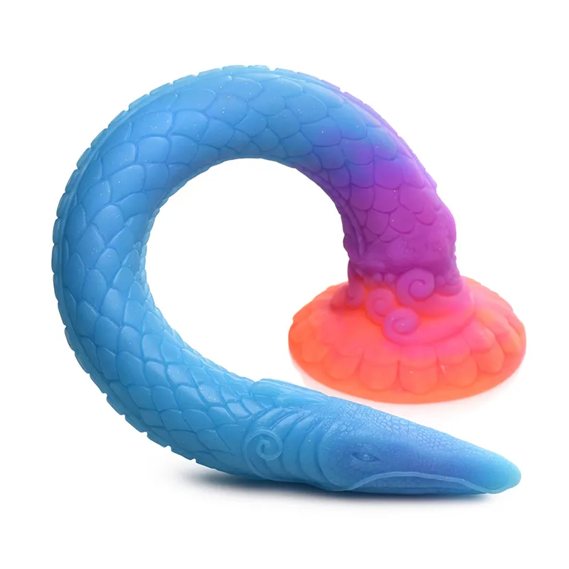 Возможно, это самый красивый анальный стимулятор, который вы когда-либо видели! Этот 40-см фаллоимитатор идеально подходит для того, чтобы подарить вам незабываемую анальную стимуляцию и на этот раз он выглядит как мистическая морская змея! База выполнена в солнечных лучах желтого и оранжевого цветов, а тело имеет оттенки фиолетового и синего, а также имеет прекрасный детальный дизайн вдоль корпуса и встроенные в него блестки!