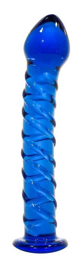 Стеклянный фаллоимитатор синего цвета создан специально, чтобы дарить удовольствие. Его витой рельеф обеспечит насыщенную стимуляцию стенок влагалища, а слегка изогнутый ствол сможет достать до чувствительной точки G. Крупная каплевидная головка очень гладкая и не доставит лишнего дискомфорта во время введения игрушки. На конце фаллоса предусмотрен ограничитель в виде широкого основания. Игрушки из стекла смогут подарить Вам дополнительные ощущения, если вы разогреете или охладите их.
