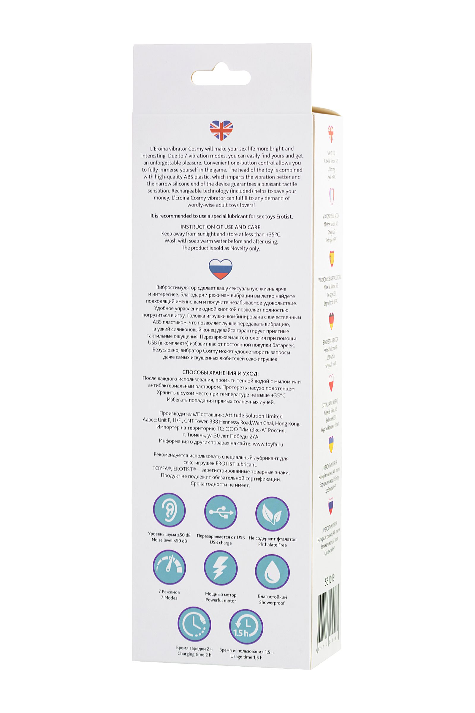 Вибростимулятор сделает вашу сексуальную жизнь ярче и интереснее. Благодаря 7 режимам вибрации вы легко найдете подходящий именно вам и получите незабываемое удовольствие. Удобное управление одной кнопкой позволяет полностью погрузиться в игру. Головка игрушки комбинирована с качественным ABS пластиком, что позволяет лучше передавать вибрацию, а узкий силиконовый конец девайса гарантирует приятные тактильные ощущения. Перезаряжаемая технология при помощи USB (в комплекте) избавит вас от постоянной покупки батареек. Безусловно, вибратор Cosmy может удовлетворить запросы даже самых искушенных любителей секс-игрушек!