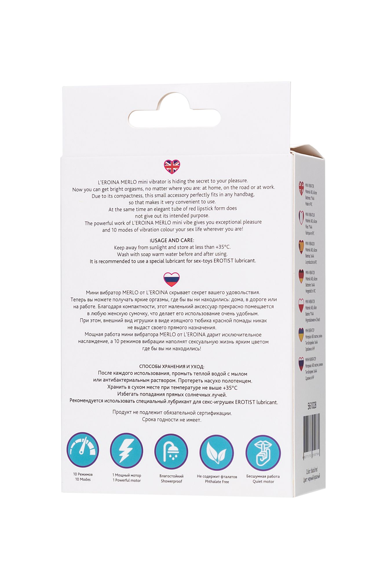 Мини вибратор MERLO от L’EROINA скрывает секрет вашего удовольствия. Теперь вы можете получать яркие оргазмы, где бы вы ни находились: дома, в дороге или на работе. Благодаря компактности, этот маленький аксессуар прекрасно помещается в любую женскую сумочку, что делает его использование очень удобным. При этом, внешний вид игрушки в виде изящного тюбика розовой помады никак не выдаст своего прямого назначения. Мощная работа мини вибратора MERLO от L’EROINA дарит исключительное наслаждение, а 10 режимов вибрации наполнят сексуальную жизнь ярким цветом где бы вы ни находились! Общая длина: 10,5 см 10 режимов Бесшумная работа Мощный мотор