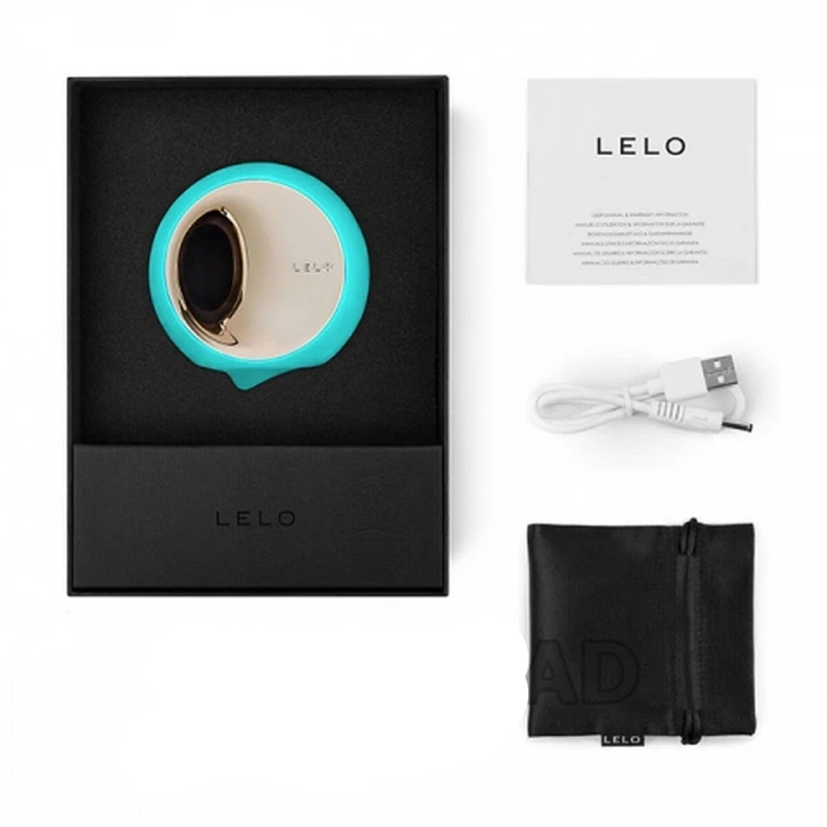 Комплектация: вибромассажёр Ora 3, USB-зарядный шнур, атласный чехол для хранения, карточка регистрации гарантии, подробное руководство по эксплуатации.