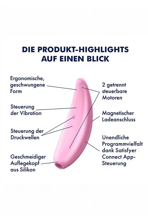 Благодаря эргономично изогнутой форме и стильному дизайну Satisfyer Curvy 3+ будто создан для вашей руки. Стимуулятор изготовлен из гладкого, шелковистого на ощупь медицинского силикона, быстро принимающего температуру тела.