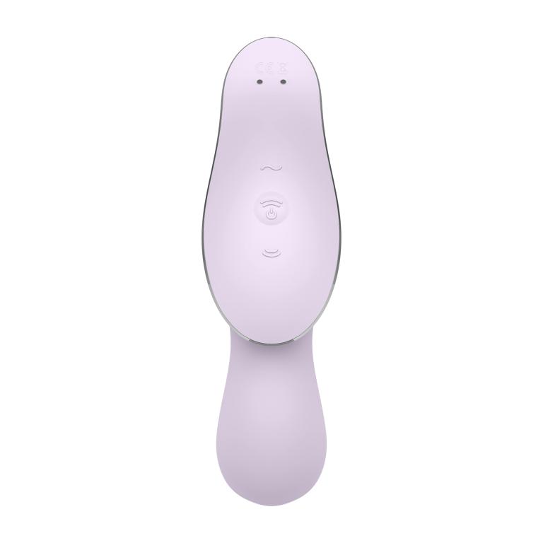 Satisfyer Curvy Trinity 2 - двойной вибростимулятор тройного назначения. Он стимулирует вакуумными волнами клитор, при этом противоположный конец приятно вибрирует, стимулируя всю зону вульвы. Также его можно отдельно использовать для стимуляции точки G.