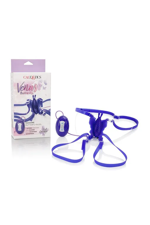 Venus Butterfly - полноконтактный вибромассажер, предназначенный для ношения и способный воздействовать на несколько эрогенных зон одновременно. Сам вибромассежер выполнен из гипоалергенного, приятного на ощупь силикона. Дистанционный пульт управления изготовлен из прочного АБС-пластика. Все материалы не содержат фталаты. Мощный мотор обеспечивает 7 функций вибрации.