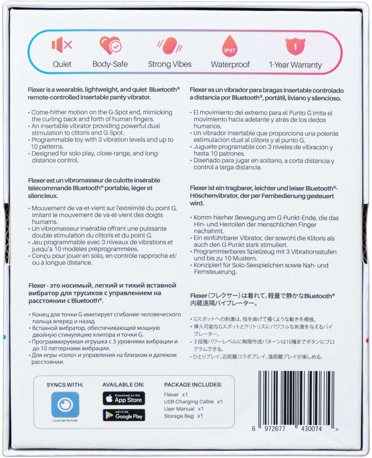 Режим "Handfree" буквально освобождает ваши руки. Небольшой размер, сверхгладкий силикон и отличные возможности подключения делают Flexer лучшей носимой секс-игрушкой с управлением на расстоянии для игр в общественных местах. Flexer легкий и достаточно маленький, его удобно носить с любыми трусиками и брать с собой.