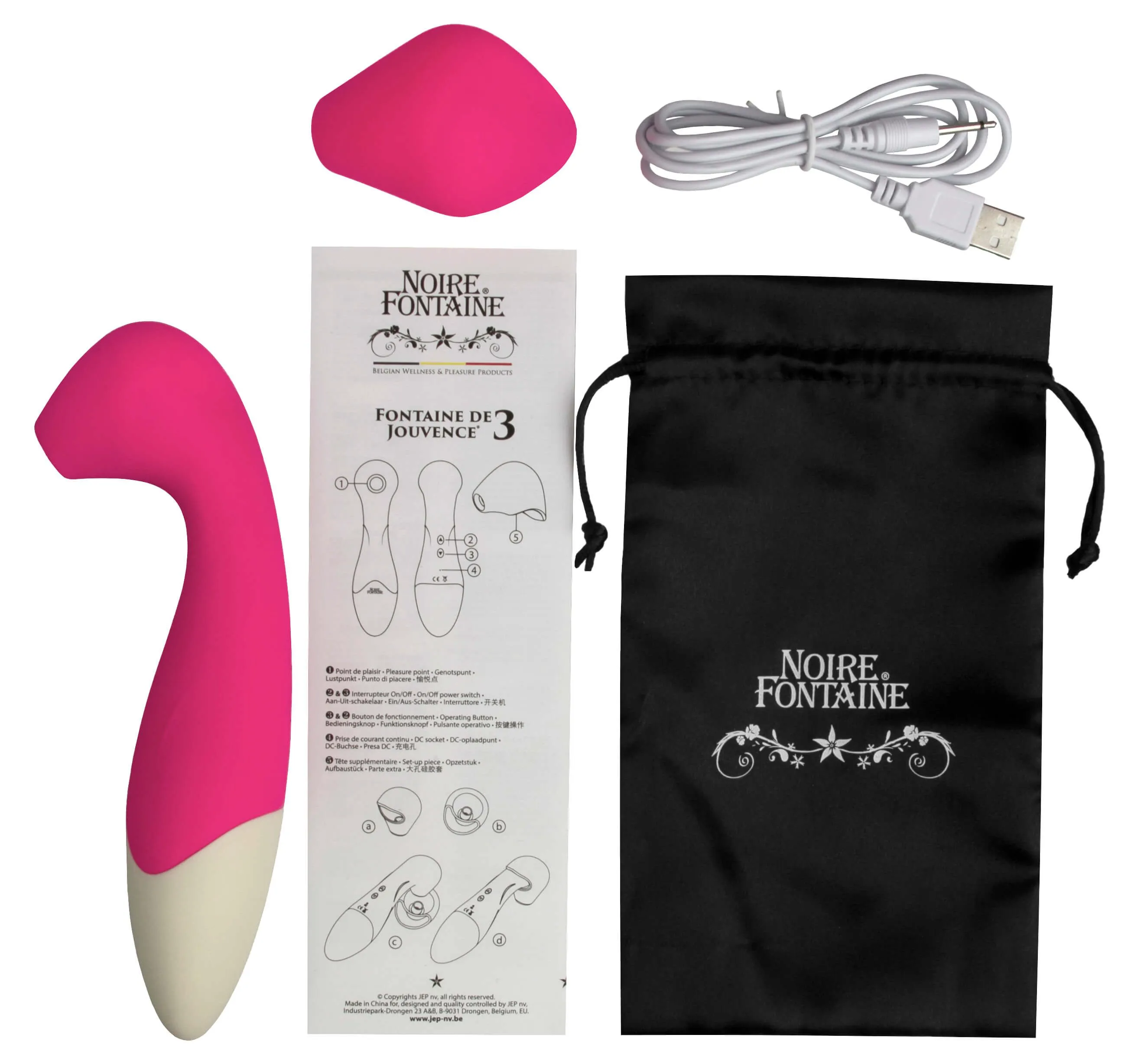 Fontaine de jouvence (фонтан молодости с фр.) - это стимулятор, который воздействует воздушными волнами, создаваемыми двигающейся вперед-назад мембраной. Данное устройство так же отлично подходит для массажа и стимуляции клитора. Всасывающий эффект обеспечит воздействие без контакта и позволит избежать чрезмерной стимуляции, что приведет к интенсивному оргазму. У игрушки есть 8 разных режимов, которые регулируются двумя кнопками на корпусе. Выберите нужную скорость и наслаждайтесь яркими ощущениями от ласк клитора!