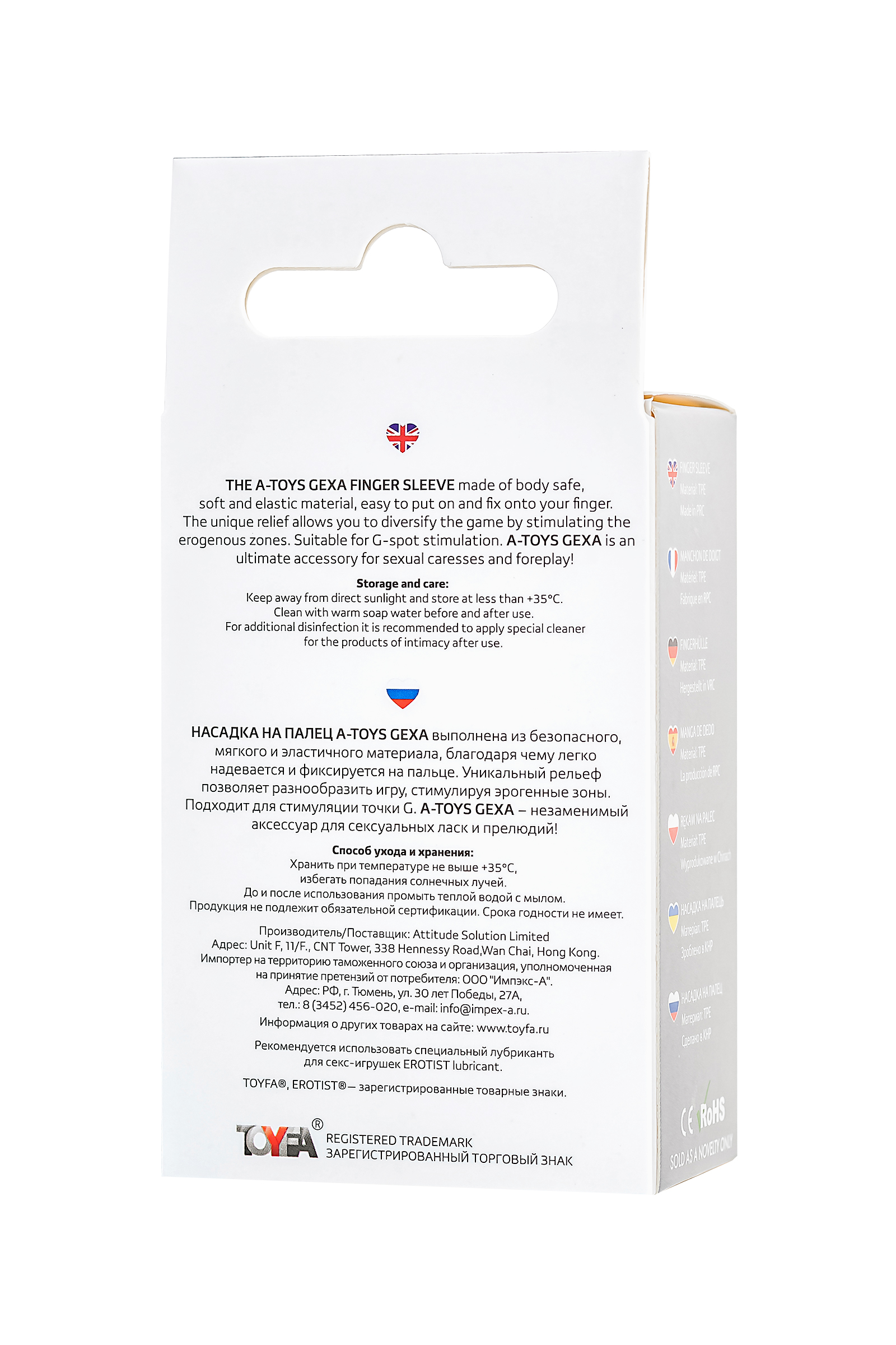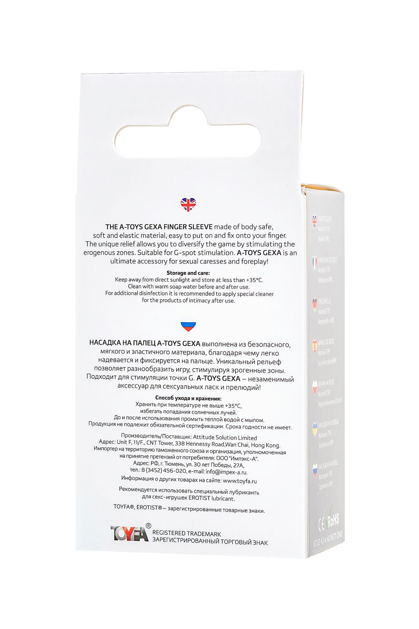 Насадка на палец A-Toys Gexa выполнена из безопасного, мягкого и эластичного материала, благодаря чему легко надевается и фиксируется на пальце. Уникальный рельеф позволяет разнообразить игру, стимулируя эрогенные зоны. Подходит для стимуляции точки G. A-Toys Gexa – незаменимый аксессуар для сексуальных ласк и прелюдий! Общий размер: 9 см