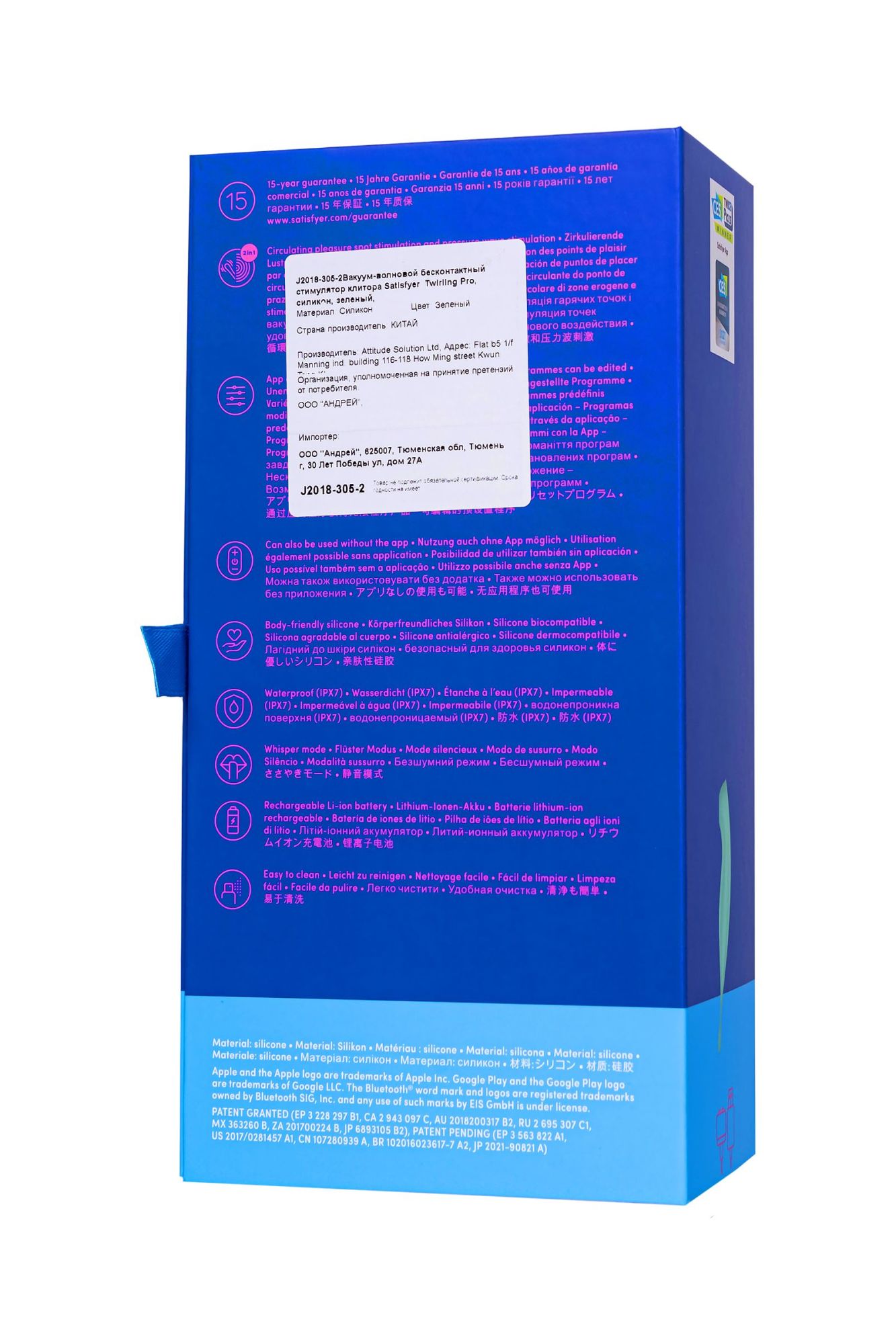 —Вакуум-волновой бесконтактный стимулятор клитора Satisfyer Twirling Pro, силикон, зеленый, 20 см