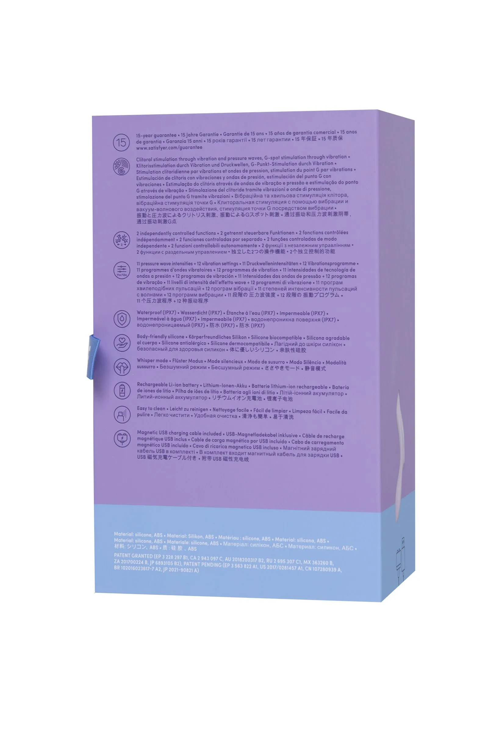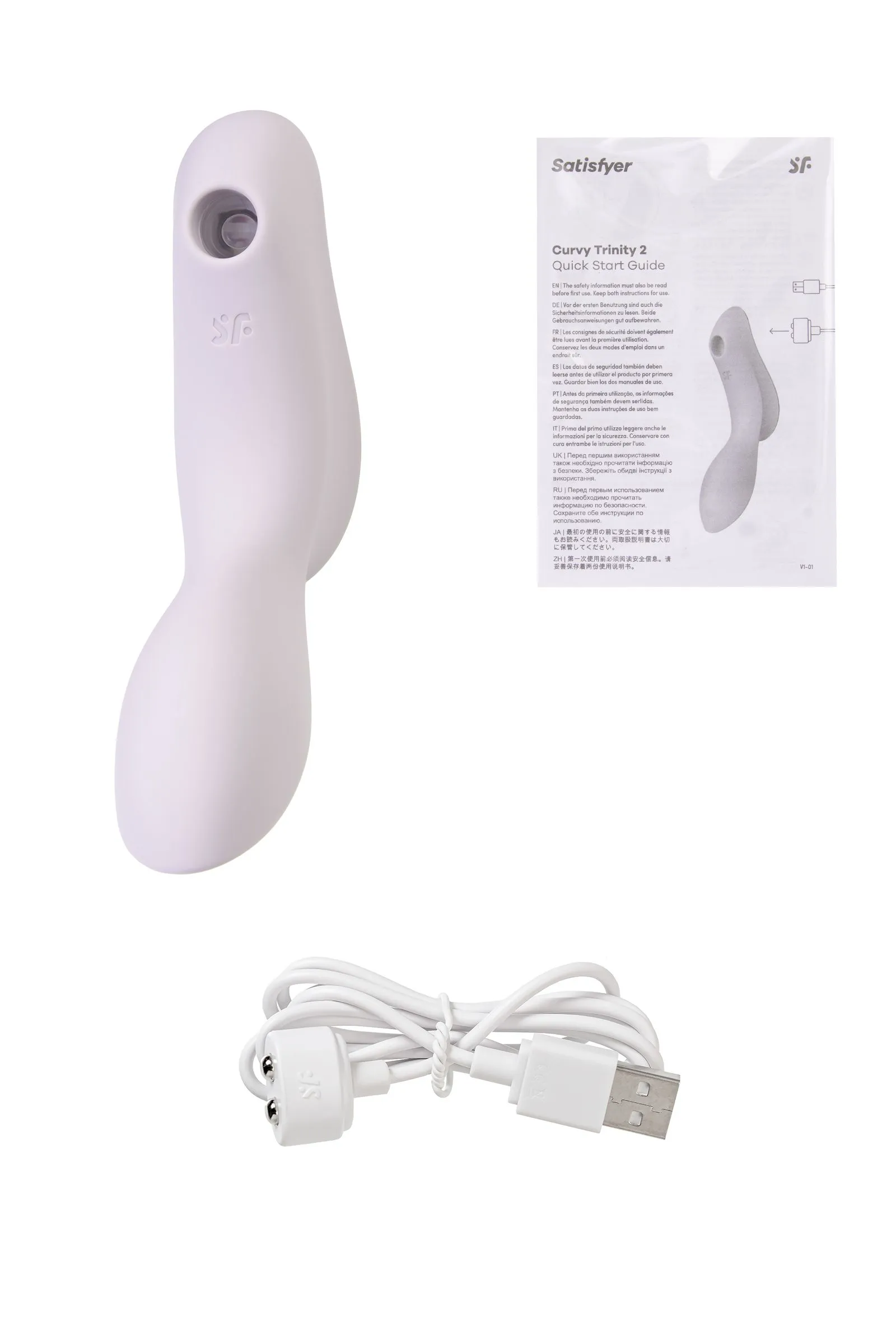 Curvy Trinity 2 от Satisfyer способен удовлетворить ласками все самые горячие точки вашего тела. Инновационный вибратор 3 в 1 сочетает в себе наружную стимуляцию клитора воздушными волнами и вибрацией и внутреннее воздействие на зону G проникающими виброволнами. С одной стороны девайса имеется раструб, который балует клитор воздушной пульсацией, превосходящей любые оральные ласки. Бесконтактная стимуляция клитора – новейшая запатентованная технология Air Pulse для женских оргазмов, которая будет сводить вас с ума снова и снова. А в сочетании с проницающей вибрацией Curvy Trinity 2 дарит клитору умопомрачительные ощущения, меняющие представление об оргазмах. С другой стороны гладкий ствол длиной 7,5 см, идеально подходящий для прицельного массажа точки G. Выпуклая погружная часть дарит ощущение наполненности. Благодаря изогнутой форме Curvy Trinity 2 также можно использовать в качестве вибратора для наружных эрогенных зон. Curvy Trinity 2 обладает тремя автономными моторами. Комбинируйте воздушную пульсацию и проникающие волны вибрации, чтобы достигать неземного блаженства каждый раз. В вашем распоряжении 11 уровней интенсивности вакуум-волновой стимуляции и 12 программ вибрации – от нежной до интенсивной. Интуитивно понятное управление с помощью трех кнопок на корпусе. Благодаря нежному материалу, из которого выполнен Curvy Trinity 2, вам будет комфортно и приятно держать его в руках и получать удовольствие от его вибрации и пульсации. Потрясающий шелковистый на ощупь высококачественный силикон – визитная карточка бренда Satisfyer. Поверхность раструба мягко и деликатно стимулирует клиторальную область. Тактильно нежный и приятный на ощупь силикон быстро адаптируется к температуре вашего тела. Эргономичный и стильный дизайн стимулятора дарит не только сексуальное удовольствие, но и эстетическое. Оцените как удобно Curvy Trinity 2 ложится в руку и поддается командам управления. Чтобы получить максимум удовольствия и сохранить материал в наилучшем виде, рекомендуется пользоваться качественной смазкой на водной основе. После использования обязательно очищайте игрушку теплой водой со специальными бактерицидными спреями для интимных товаров. Особенности: Возможность одновременного воздействия на клитор воздушной пульсацией и вибрацией. Анатомический изгиб и мощные проникающие вибрации для зоны G. Простое управление отдельными моторами двумя кнопками. 12 режимов вибрации и 11 режимов волновой стимуляции. Нежный сиреневый цвет и мягкий, эластичный силикон без запаха, без аллергенов и вредных для здоровья веществ. 100% водонепроницаемый - IPX7. Время работы 60 минут. Перезаряжаемый, магнитный USB-кабель, время зарядки 2,5 часа.