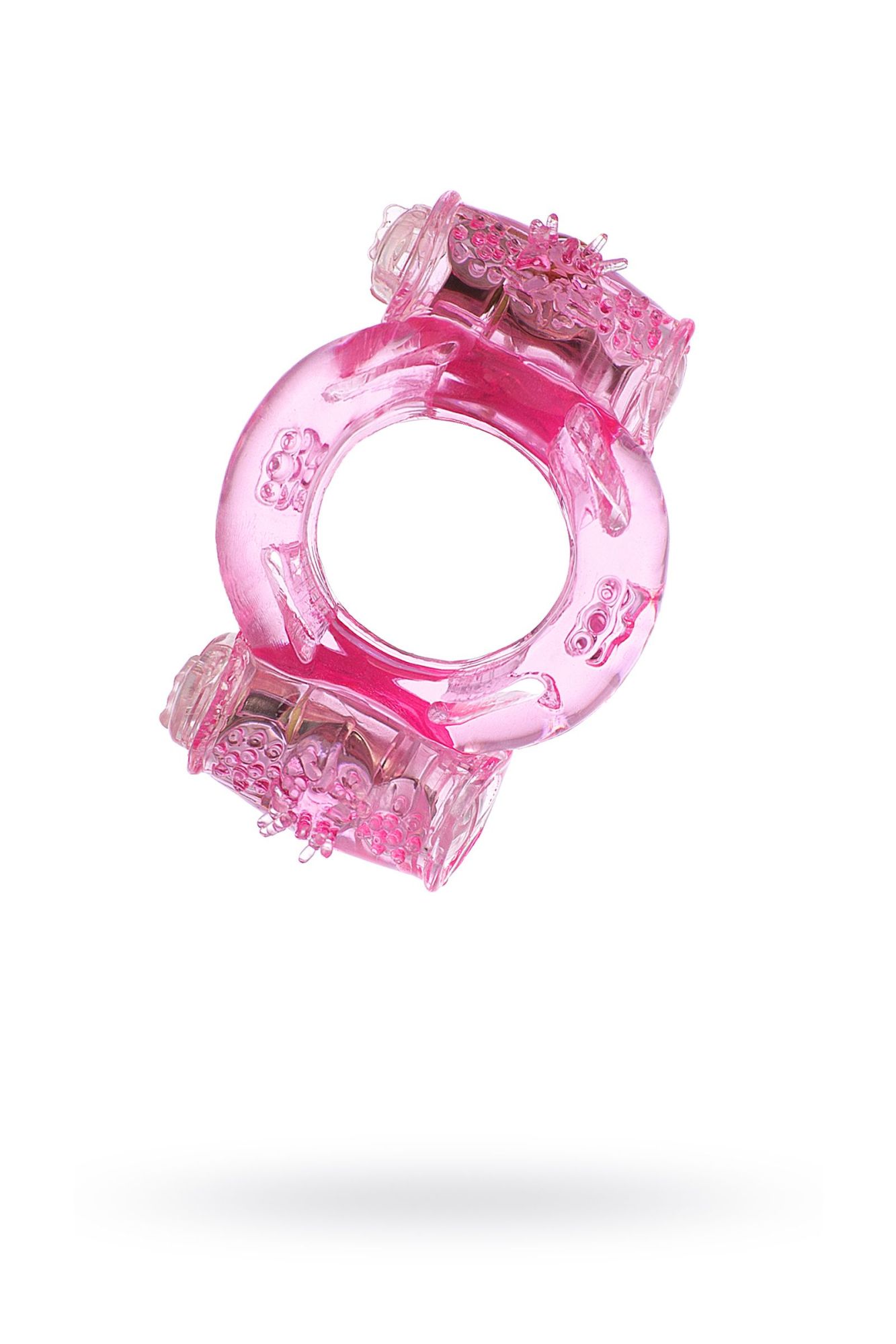 Эрекционное кольцо на пенис с двойной вибрацией TOYFA Basic, TPE, розовый