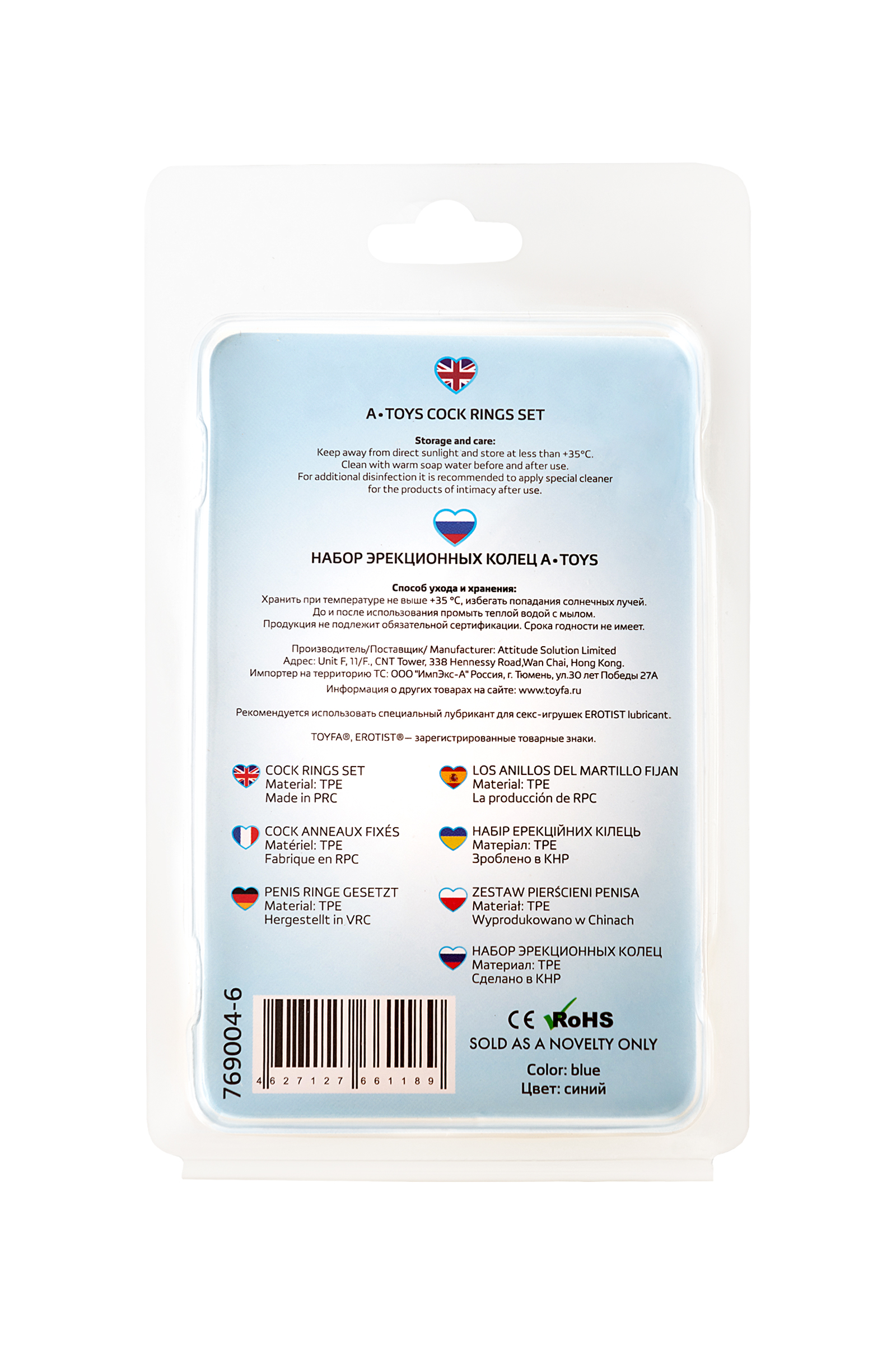 Набор колец TOYFA A-toys, TPE, синий, Ø 3,5/3/2 см