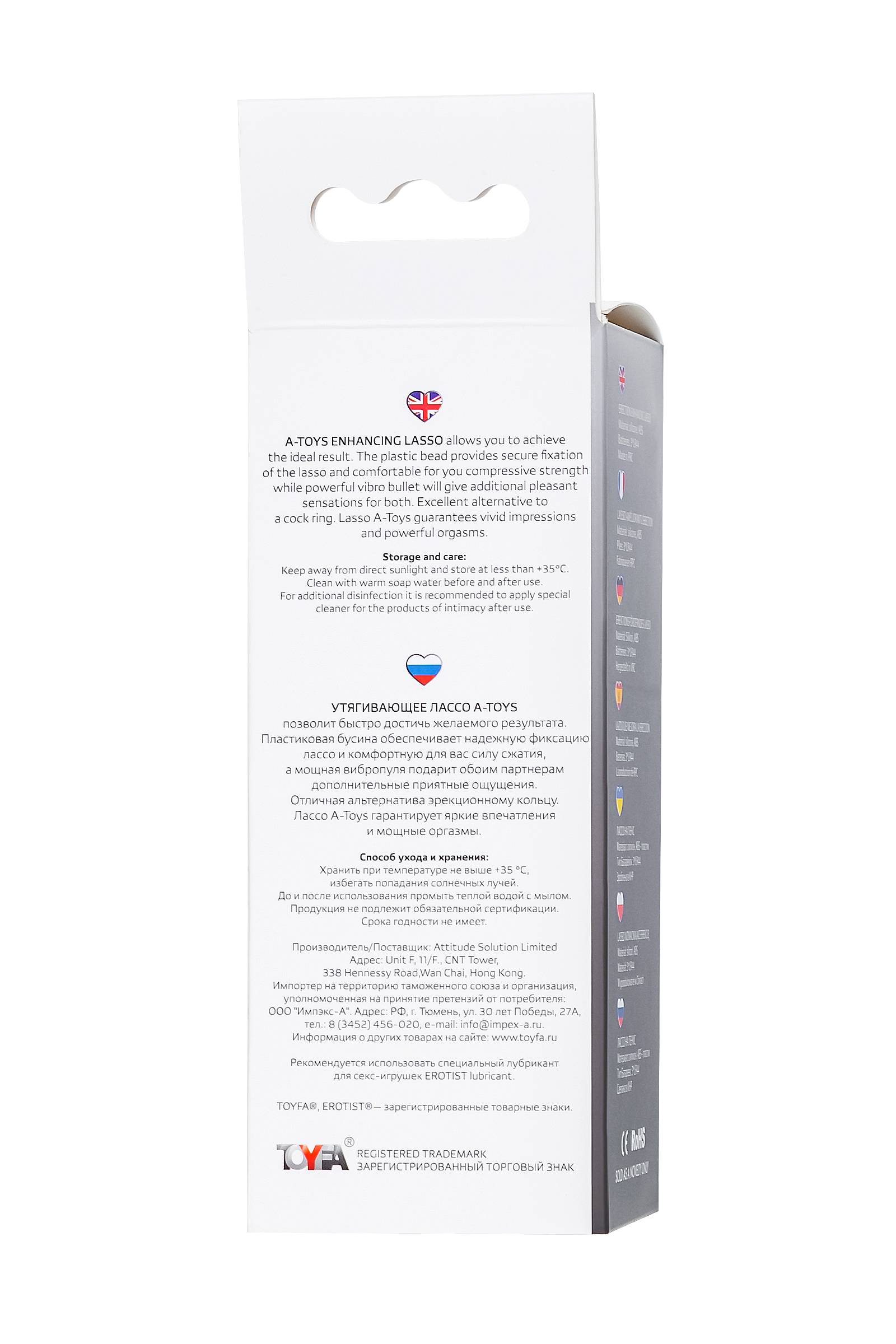 Утягивающее лассо A-Toys позволит быстро достичь желаемого результата. Пластиковая бусина обеспечивает надежную фиксацию лассо и комфортную для вас силу сжатия, а мощная вибропуля подарит обоим партнерам дополнительные приятные ощущения. Отличная альтернатива эрекционному кольцу. Лассо A-Toys гарантирует яркие впечатления и мощные оргазмы. Общая длина: 14 см 1 режим вибрации Съемная вибропуля