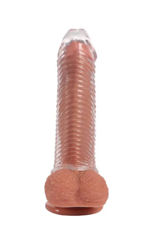 Насадка надевается на всю длину полового члена. Для идеальной посадки лишний материал можно отрезать.