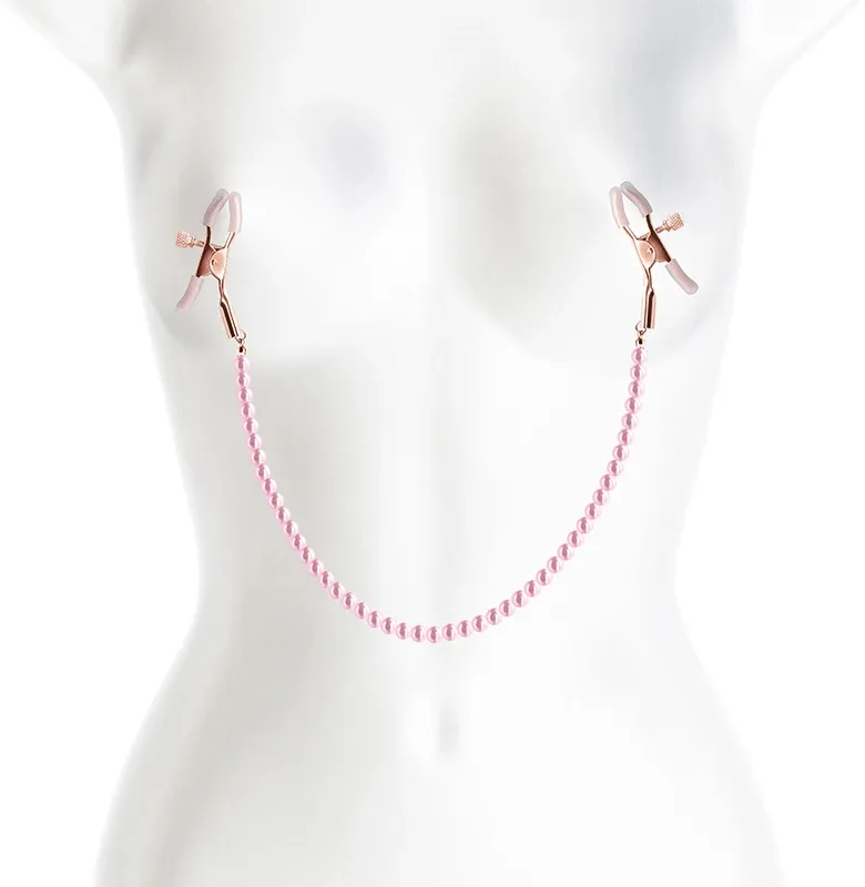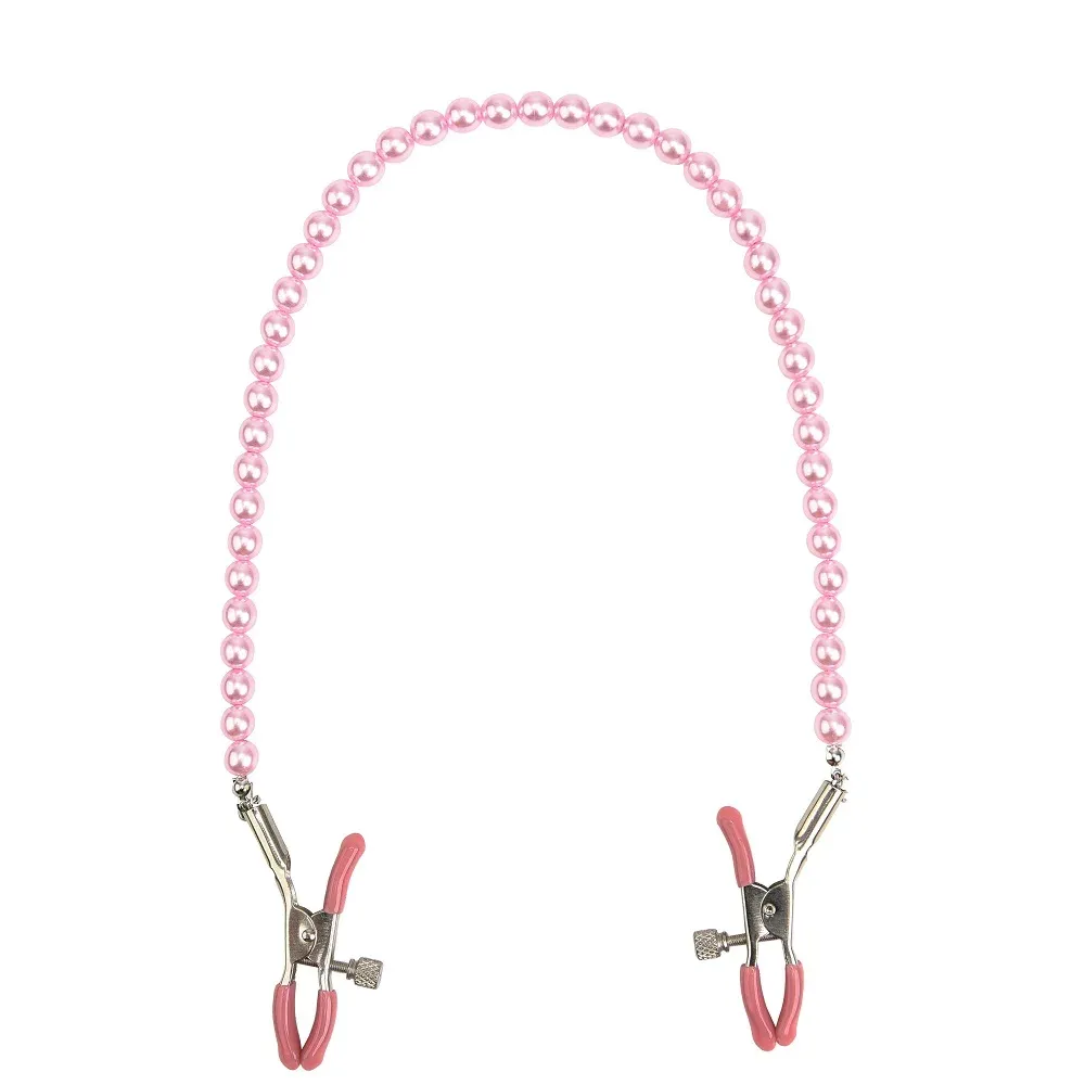 Зажимы на соски с цепочкой из бусин служат дополнительным стимулятором одной из самых чувствительных зон.Включают в себя 2 полностью регулируемых многофункциональных зажима. Имеют мягкие наконечники,между собой зажимы соединены цепью из бусин, которая одновременно служит своебразным утяжелителем для дополнительных ощущений.