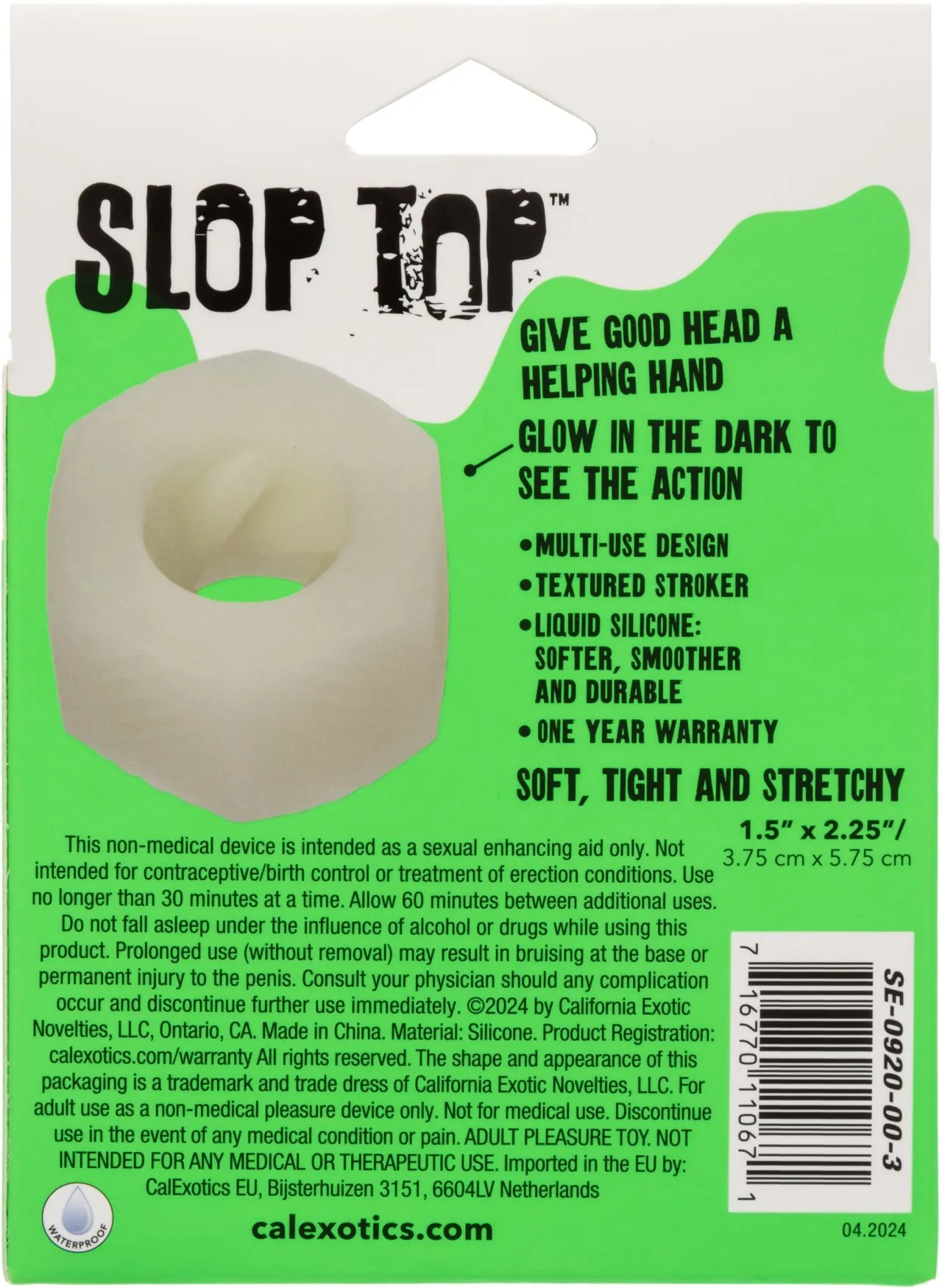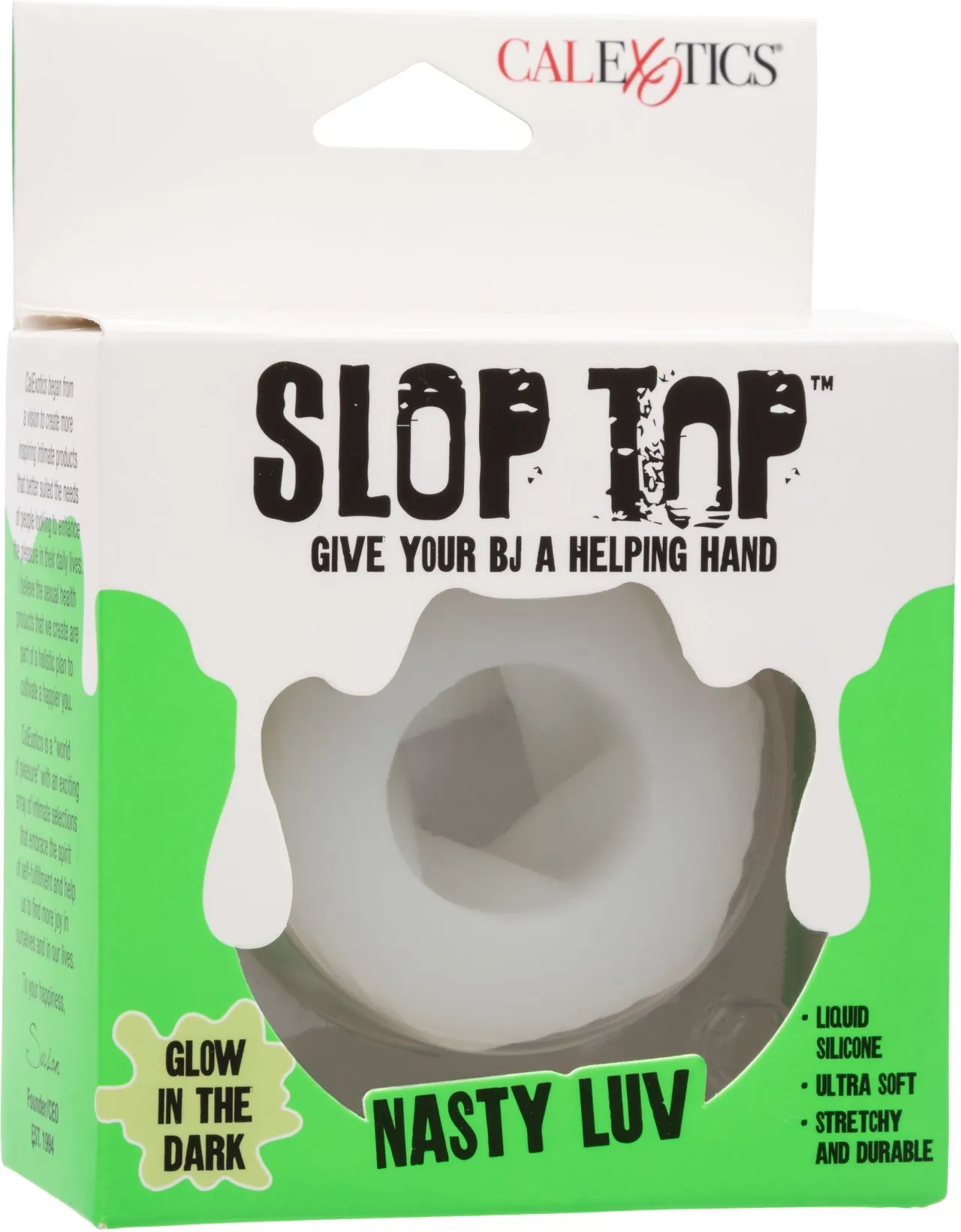 Эрекционное кольцо-бампер из жидкого силикона SLOP TOP NASTY LUV изготовлено из высококачественного жидкого силикона, мягкое, гладкое и невероятно прочное. Его функция свечения в темноте добавляет захватывающий визуальный элемент, позволяя вам видеть действие даже при слабом освещении. Мягкий, плотный и эластичный материал обеспечивает плотное прилегание, которое адаптируется к вашим потребностям.
