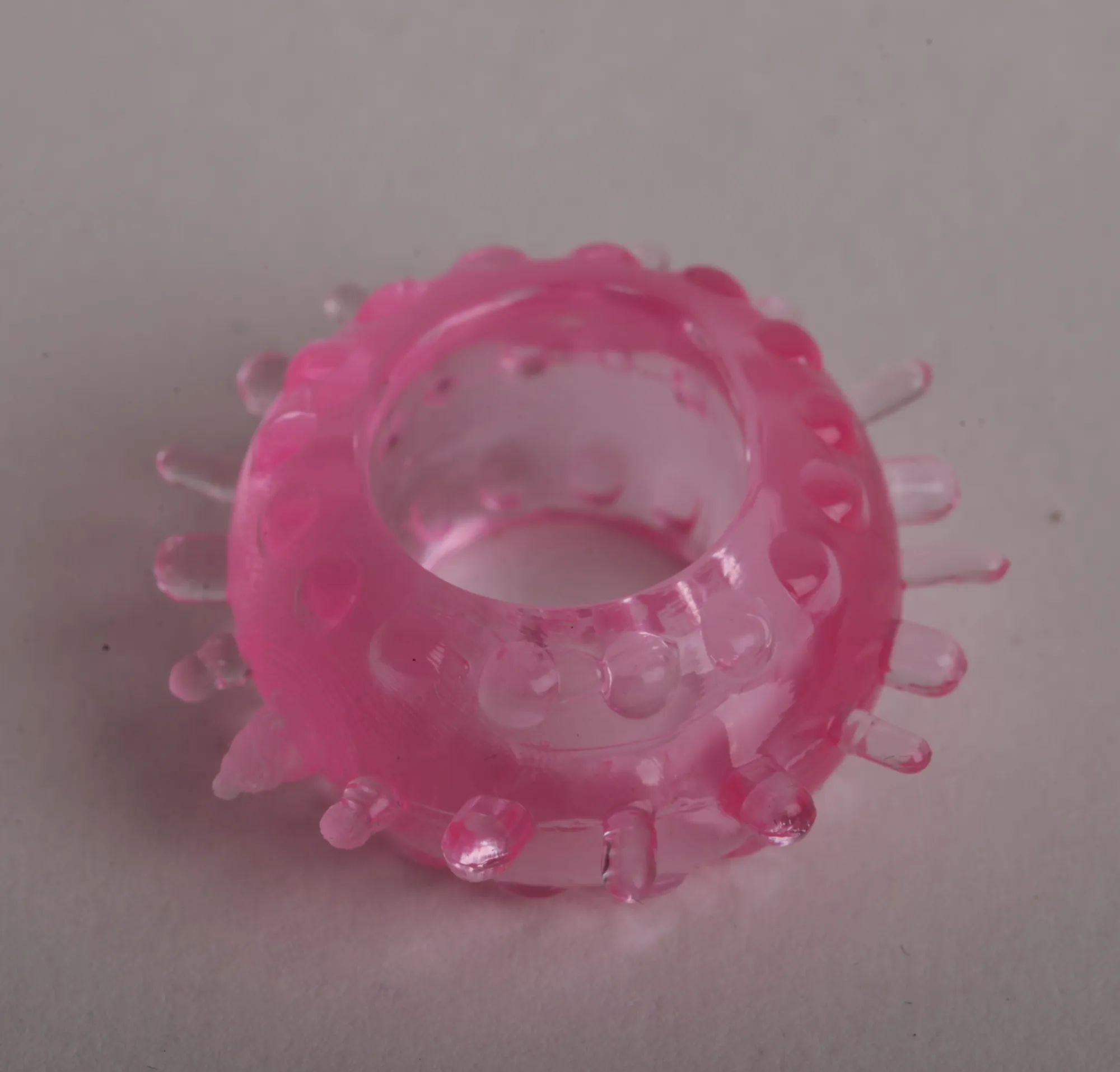 Розовое эрекционное кольцо с мягкими пупырышками. Материал- ПВХ. Диаметр в нерастянутом состоянии- 1,7 см. Страна изготовления- Китай.