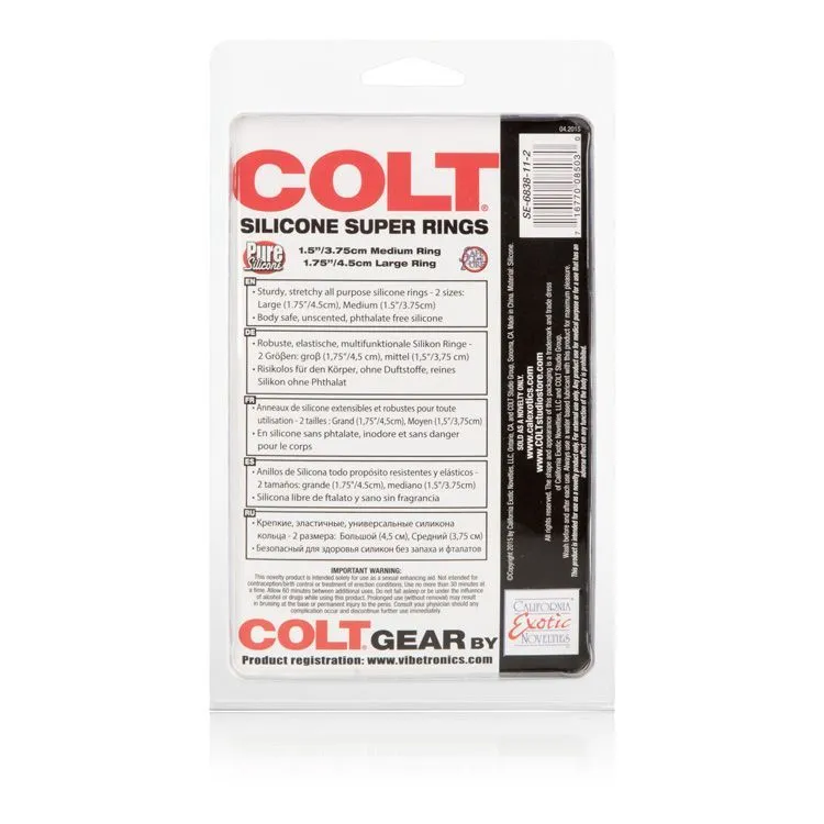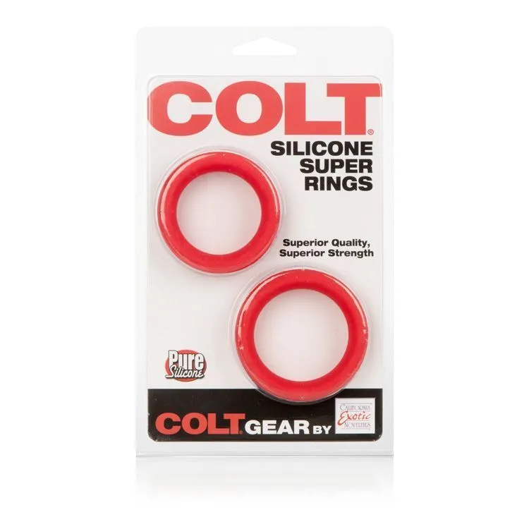 Colt Silicone Super Rings - это набор из двух красных эрекционных колец, сделанных из медицинского силикона. Принцип работы колец заключается в том, что они пережимают сосуды члена и препятствуют оттоку крови. Особый эластичный материал колец позволяет изделиям хорошо растягиваться, благодаря чему Вы не будете испытывать дискомфорт во время их ношения. Также этот материал имеет водоотталкивающее свойство и теплостойкость. Кольцо поддержит эрекцию, замедлит наступление эякуляции у мужчины и усилит ощущения!