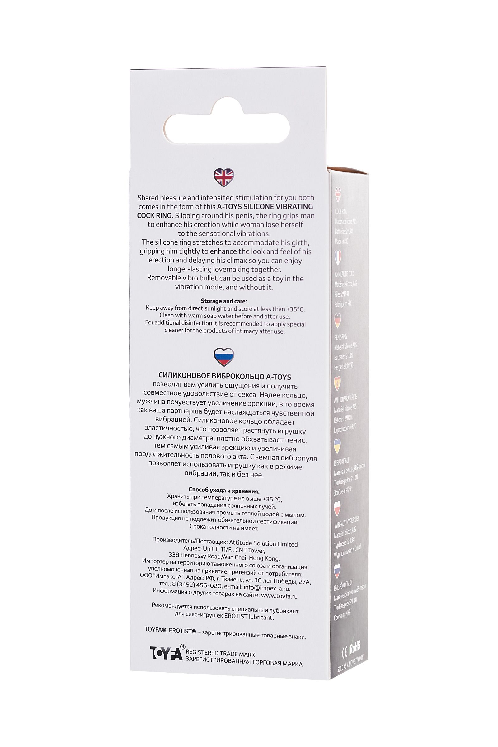 Силиконовое виброкольцо А-Toys позволит вам усилить ощущения и получить совместное удовольствие от секса. Надев кольцо, мужчина почувствует увеличение эрекции, в то время как ваша партнерша будет наслаждаться чувственной вибрацией. Силиконовое кольцо обладает эластичностью, что позволяет растянуть игрушку до нужного диаметра, плотно обхватывает пенис, тем самым усиливая эрекцию и увеличивая продолжительность полового акта. Съемная вибропуля позволяет использовать игрушку как в режиме вибрации, так и без нее. Общий размер кольца: 6,3 см Диаметр: 3,1 см