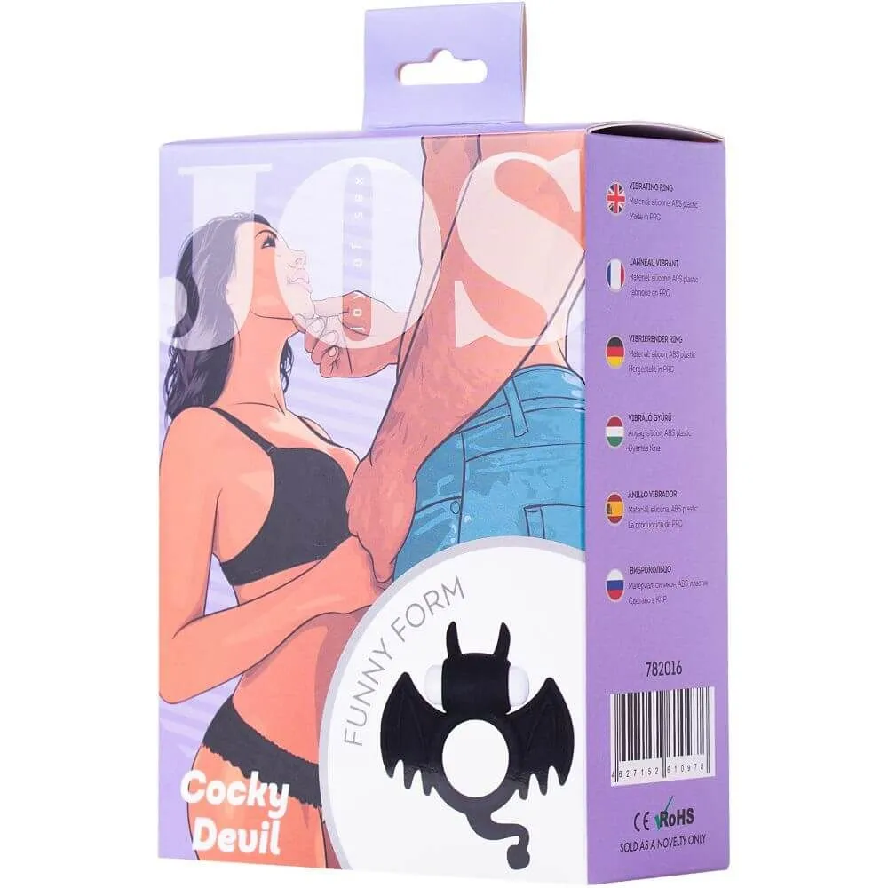 Виброкольцо SWEET DEVIL от JOS - это секс игрушка в виде черного дьявола, которая надевается на половой член, перекрывая отток крови, и следовательно, усиливает эрекцию и замедляет процесс семяизвержения. При этом вибрирующая часть кольца дополнительно стимулирует женщину.
