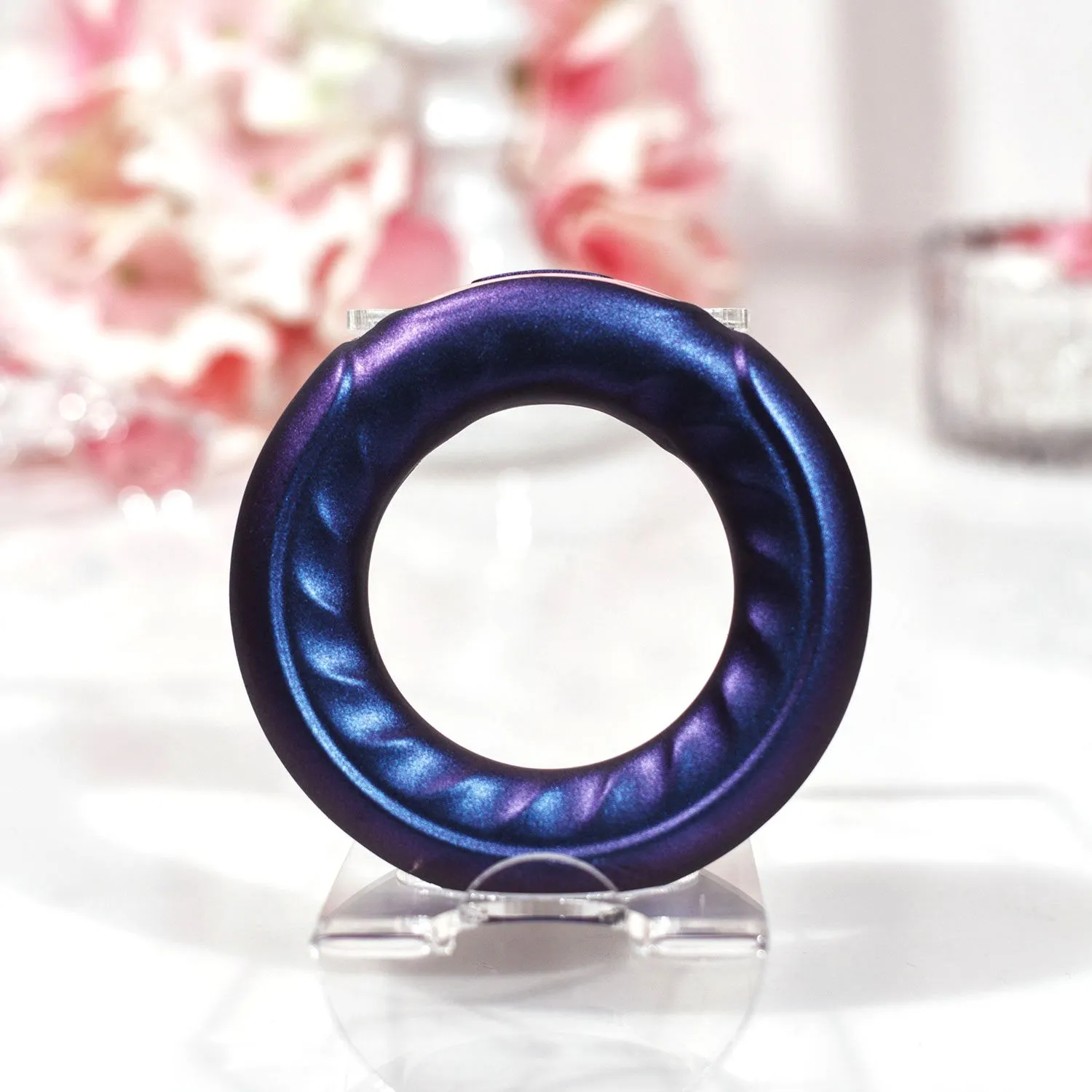 Потрясающий космический дизайн соответствует названию, мягкий безопасный силикон переливается синим и фиолетовым цветом. Эрекционное виброкольцо Saturn прочное, но эластичное, поэтому не создаёт дискомфорта при использовании.