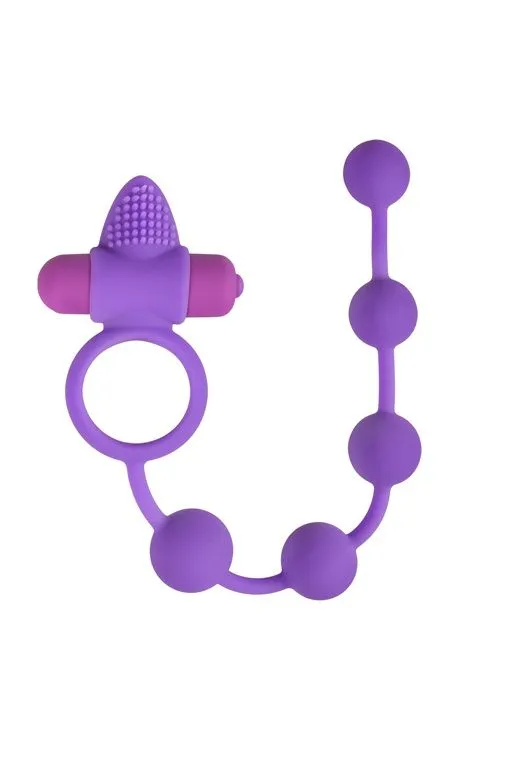 Эрекционное кольцо с анальной цепочкой, фиолетовое