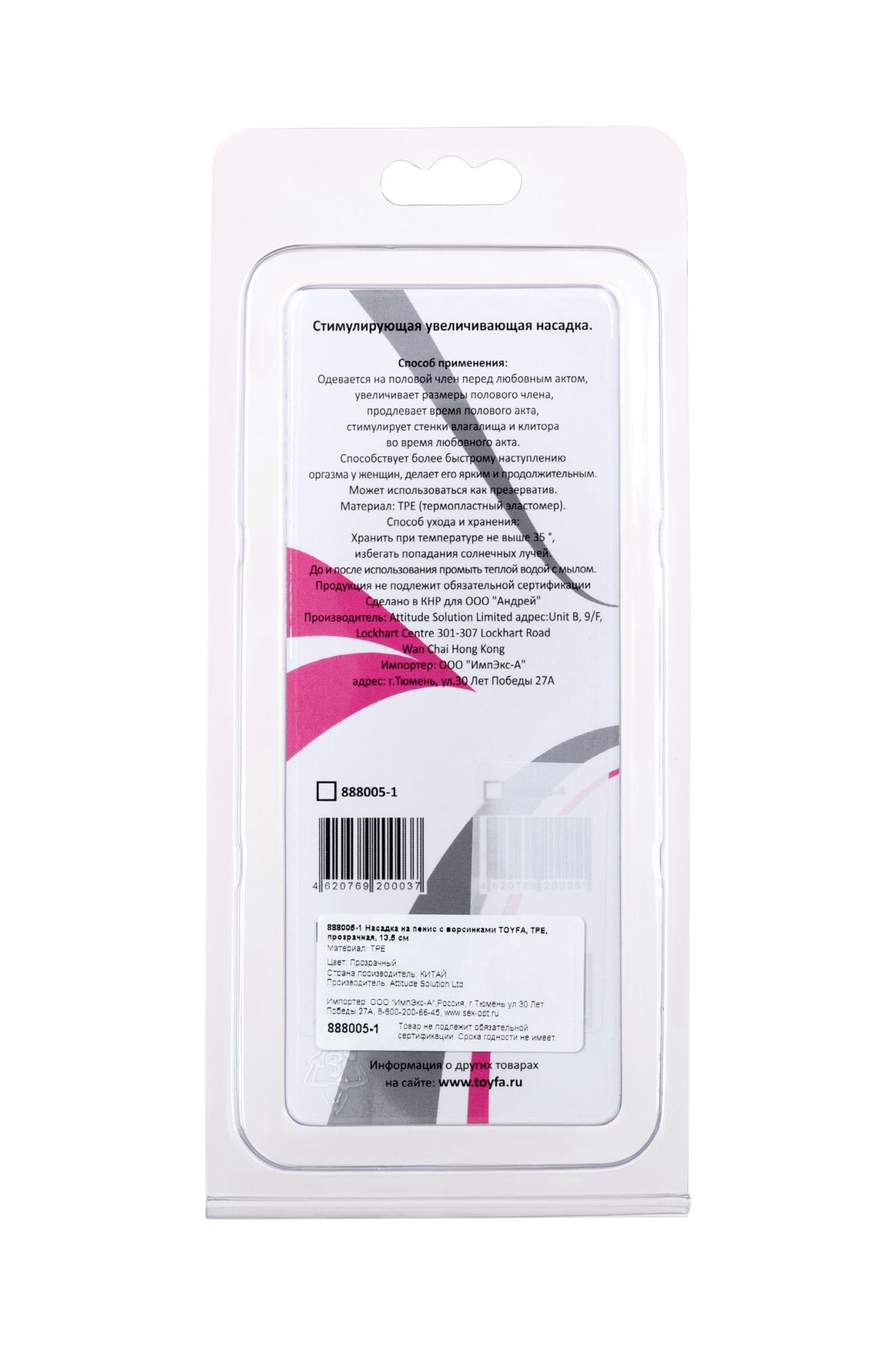 Насадка, выполненная из материала TPE, длина 13,5 см, диаметр 2,5 см.