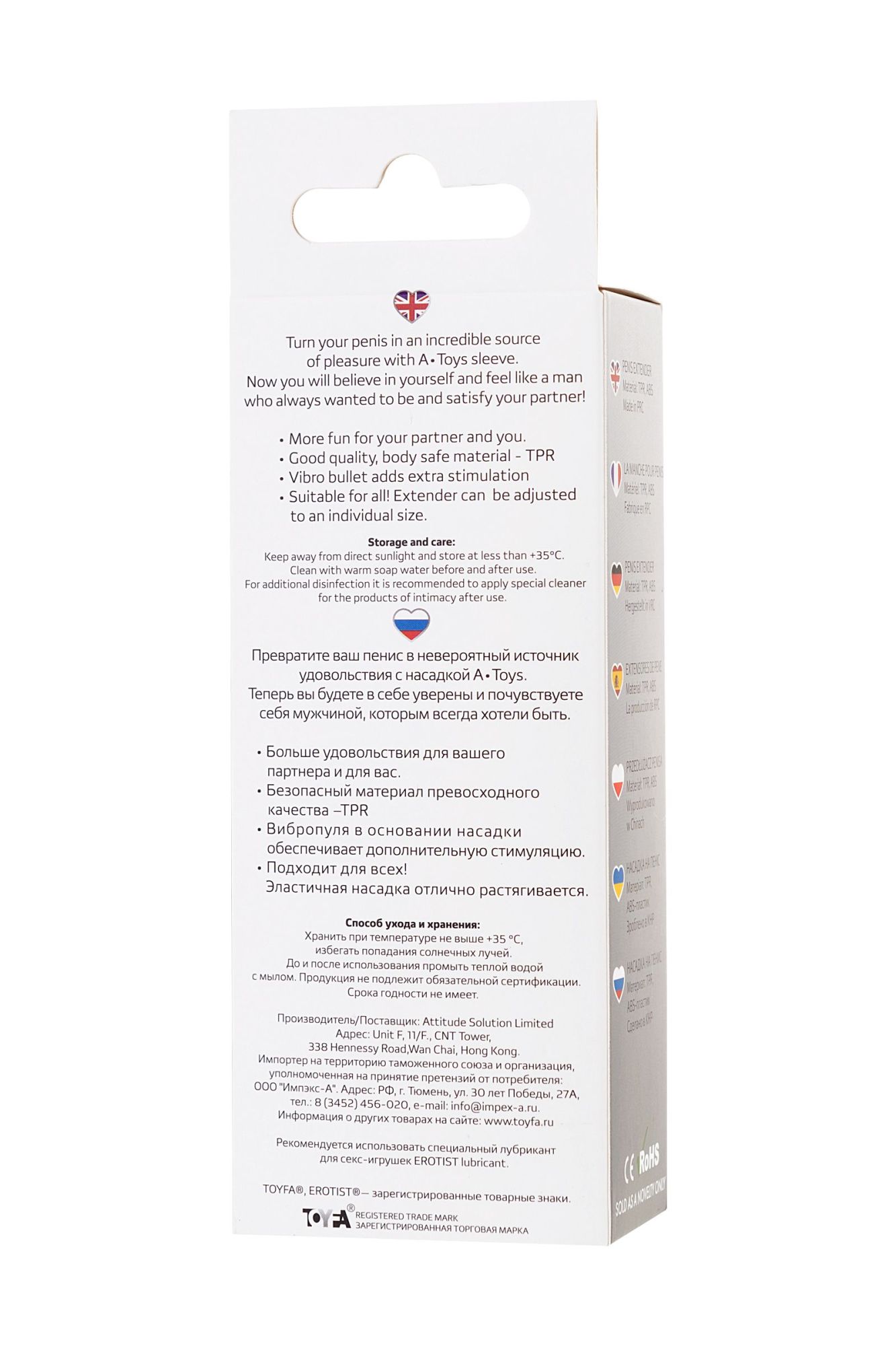 Превратите ваш пенис в невероятный источник удовольствия с насадками A-Toys Fril. Теперь вы будете в себе уверены и почувствуете себя мужчиной, которым всегда хотели быть и удовлетворить своего партнера! • Гарантированное и мгновенное увеличение пениса без операций и таблеток! • Больше удовольствия для вашего партнера и для вас. • Превосходный, безопасный материал –TPR. •Вибропуля в основании насадки обеспечивает дополнительную стимуляцию. •Подходит для всех! Эластичная насадка отлично растягивается.