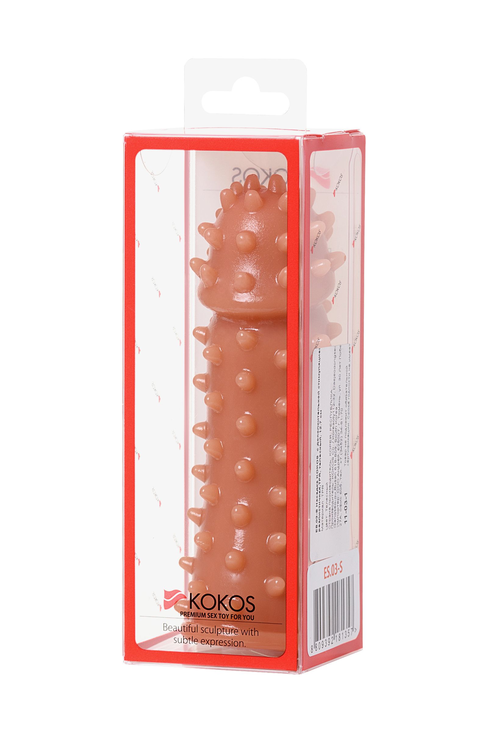 Увеличивающая насадка KOKOS Extreme Sleeve 03 с впечатляющей дополнительной стимуляцией решает сразу 3 задачи: дарит удовольствие обоим партнерам, позволяет экспериментировать с секс-игрушками и выводит интимную жизнь на более высокий уровень. Желанное разнообразие. Насадка придает члену внушительный объем и новую форму, поэтому как нельзя лучше подходит для сценариев «Секс с незнакомцем». При этом выразительный рельеф с выпуклыми шипами привносит незабываемый эффект новизны в ощущения партнерши. Зашкаливающее удовольствие для двоих. В то время как женщина испытывает потрясающее чувство наполненности и получает интенсивную стимуляцию стенок влагалища, мужчина наслаждается более продолжительным половым актом и возбуждающими оргазмами партнерши. Яркие эксперименты. Киберкожа прекрасно передает всю мощность вибраций, поэтому насадку можно использовать не только с партнером, но и с любимым вибратором. Вы также оцените: как KOKOS Extreme Sleeve 03 превосходно тянется и легко надевается на член, обеспечивая при этом плотное и комфортное прилегание как KOKOS Extreme Sleeve 03 быстро принимает температуру тела и насколько он приятен на ощупь как KOKOS Extreme Sleeve 03 долго сохраняет первоначальный вид при соблюдении простых правил — использование лубрикантов на водной основе и хранение в индивидуальной упаковке в прохладном темном месте Увеличивающая насадка KOKOS Extreme Sleeve 03 подарит ощущения, которых у вас еще не было.