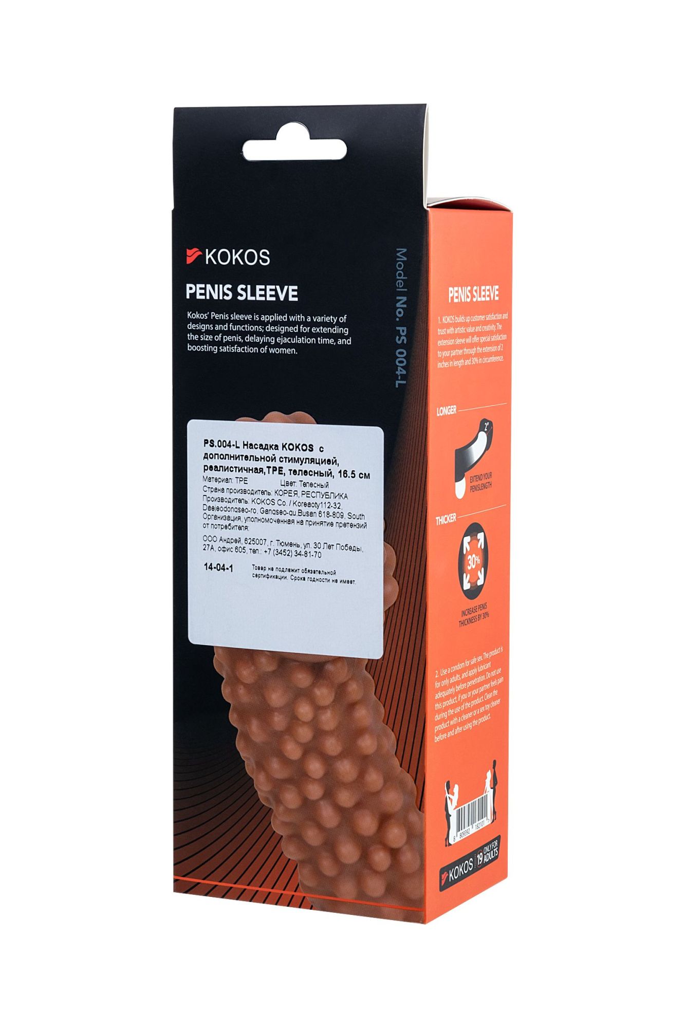 —Насадка KOKOS с дополнительной стимуляцией, реалистичная, TPE, телесная, 16.5 см