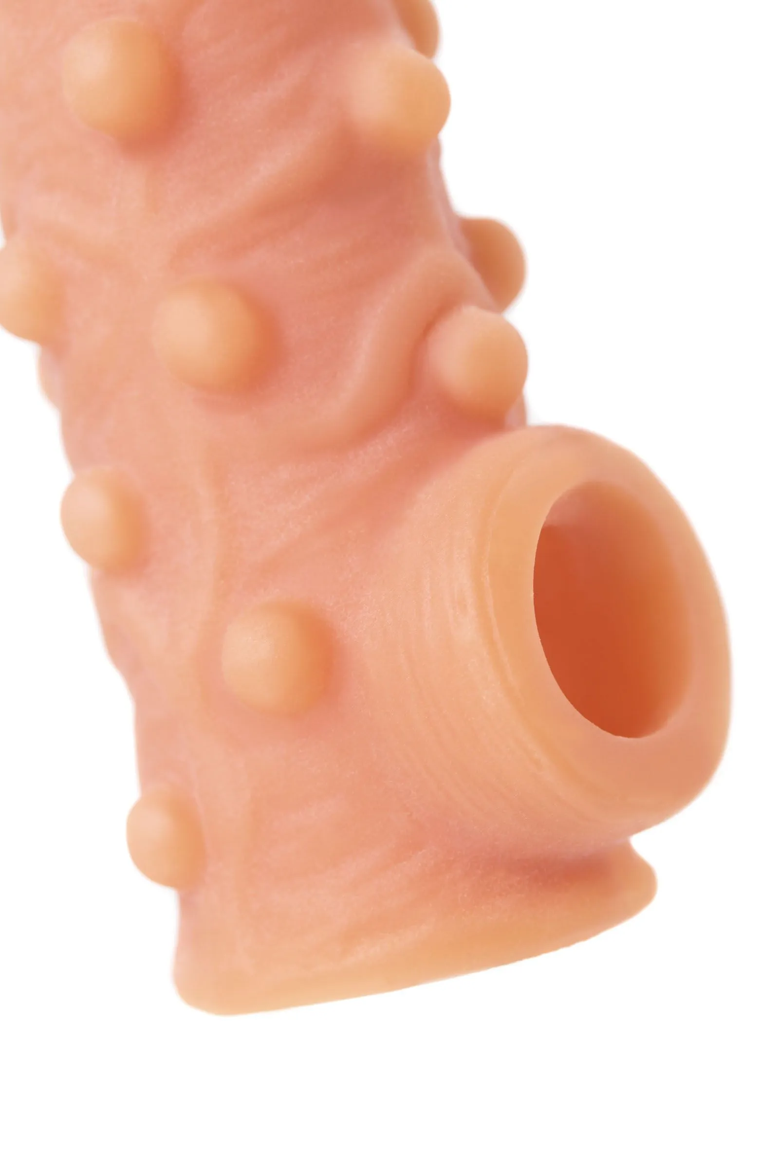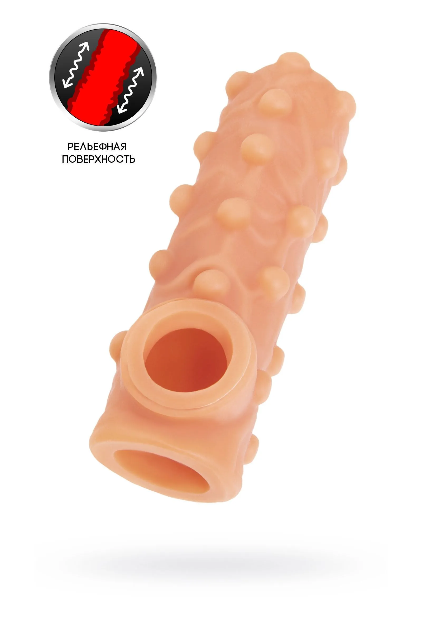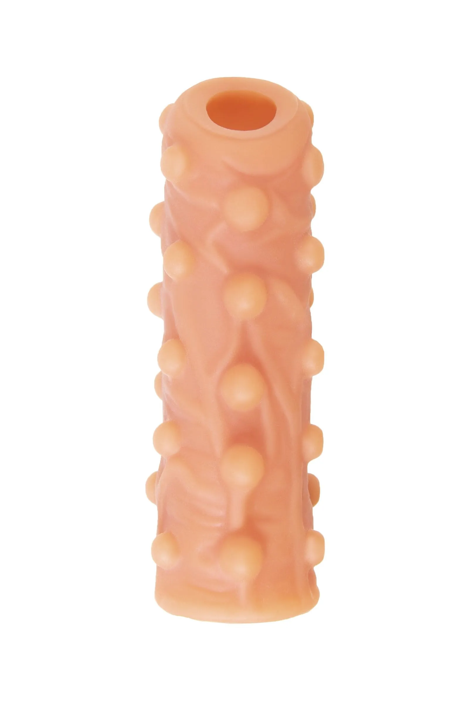 Открытая насадка с фантазийным рельефом от KOKOS предназначена воплотить фантазии о взаимном удовольствии. Реалистичная насадка на пенис - необходимый элемент для вашей сексуальной игры, если вы хотите максимально удовлетворить свою партнершу и сделать секс незабываемым. Откройте новые возможности: Увеличенный объем полового члена на 30% добавляет мужчине уверенности в своих сексуальных возможностях. Дополнительная стимуляция партнерши с помощью рельефа для яркого и насыщенного оргазма. Увеличение продолжительности полового акта у мужчины - задержка эякуляции, и наращивание темпа приближения оргазма у женщины. Насадка имеет форму “рукав”, плотно прилегает к пенису, создавая дополнительную толщину и оставляя головку открытой. Это позволяет сохранить чувствительность головки, задерживая эякуляцию. В основании есть отверстие для мошонки, с помощью которого вы надежно зафиксируете насадку на пенисе, не ограничиваясь в активных движениях. Насадка, за счет плотного облегания мошонки и головки, усиливает эрекцию. Выпуклый рельеф в виде многочисленных вен и внушительных шариков по всему стволу насадки очень хорошо стимулирует зону G, вход во влагалище и настойчиво ласкает чувствительные зоны. Вариативность стимуляции регулируется активным темпом движения вперед-назад и изменением угла проникновения. Дополнительный объем дарит то самое чувство наполненности, увеличивая поток возбуждения. Мужчина тоже будет ощущать стимуляцию за счет давления стенок влагалища на пенис. Супер эластичный материал быстро принимает температуру тела, отлично тянется, сохраняя при этом прочность. Нежное и мягкое покрытие такое же приятное на ощупь, как и человеческая кожа. Насадка сделана из высококачественного безвредного для человеческого организма материала, который прошел необходимые тестирования и сертификацию. Долговечность использования при соблюдении правил хранения и ухода за насадкой. Используйте с насадкой лубрикант только на водной основе. Длина: 14 см Диаметр: 4,4 см Размер: L Цвет: телесный Материал: TPE Страна бренда KOKOS: Корея