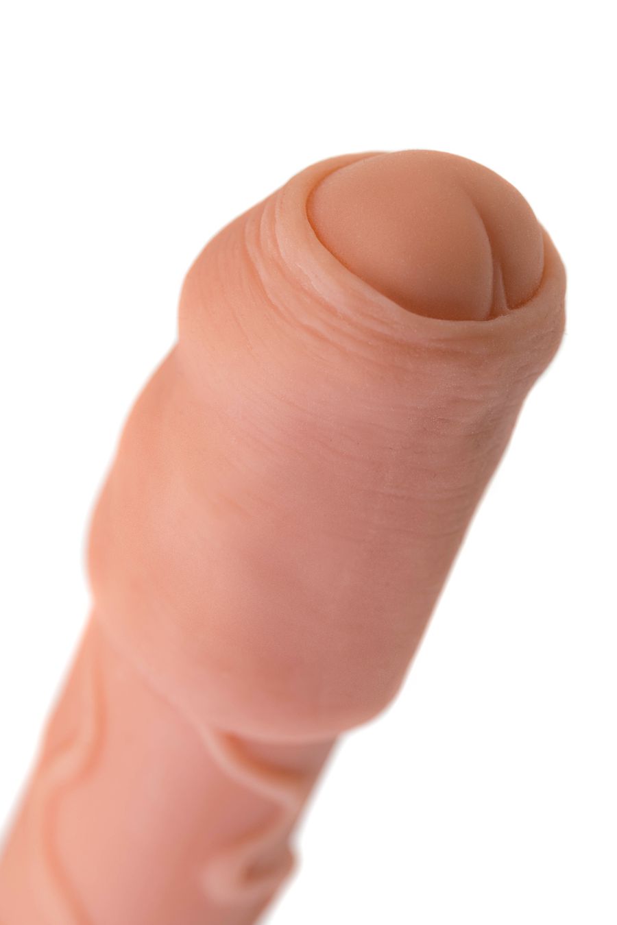 Насадка из супермягкого реалистичного материала легко растягивается и надевается на член, чтобы сделать его более впечатляющим. Она не только гарантирует мгновенное увеличение пениса, но и позволяет продлить половой акт, делая мужской орган менее чувствительным. Материал Softskin имитирует настоящую кожу и быстро становится теплым и «живым». Кольцо на мошонку отлично удерживает насадку, и вы можете наслаждаться друг другом, не заботясь о ее фиксации.