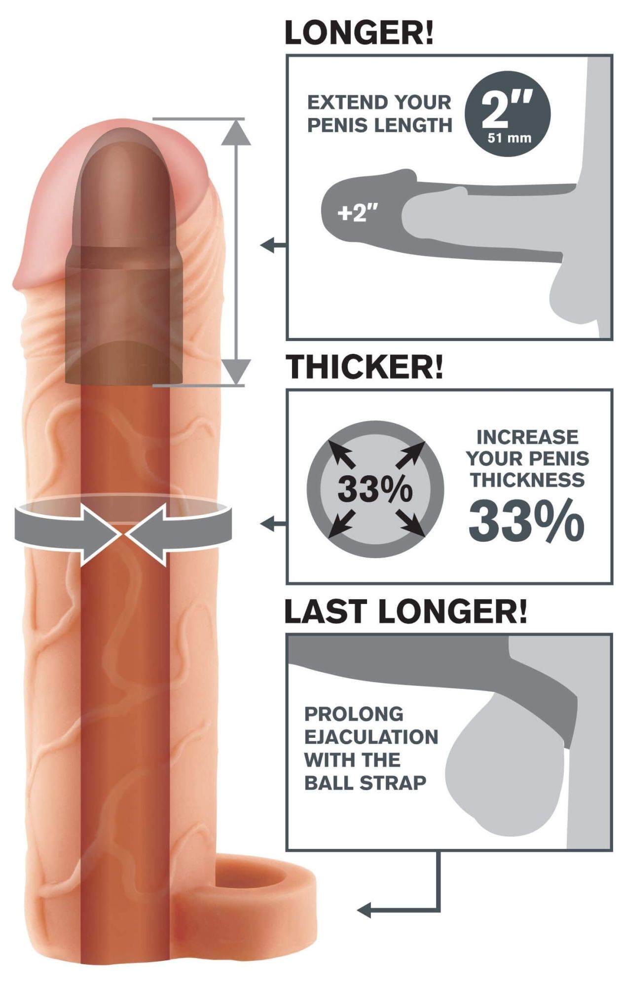 Благодаря насадке Perfect 2" Extension Вы сможете мгновенно превратить свой член в настоящую машину для получения наслаждений. Больше ничто не помешает Вам иметь такой член, какой Вы хотите, и удовлетворять свою партнершу. Насадка создана как доступная и безопасная альтернатива увеличения члена без дорогостоящего хирургического вмешательства и приема различных препаратов. Утяжка для мошонки позволит продлить половой акт и достигнуть незабываемой кульминации.