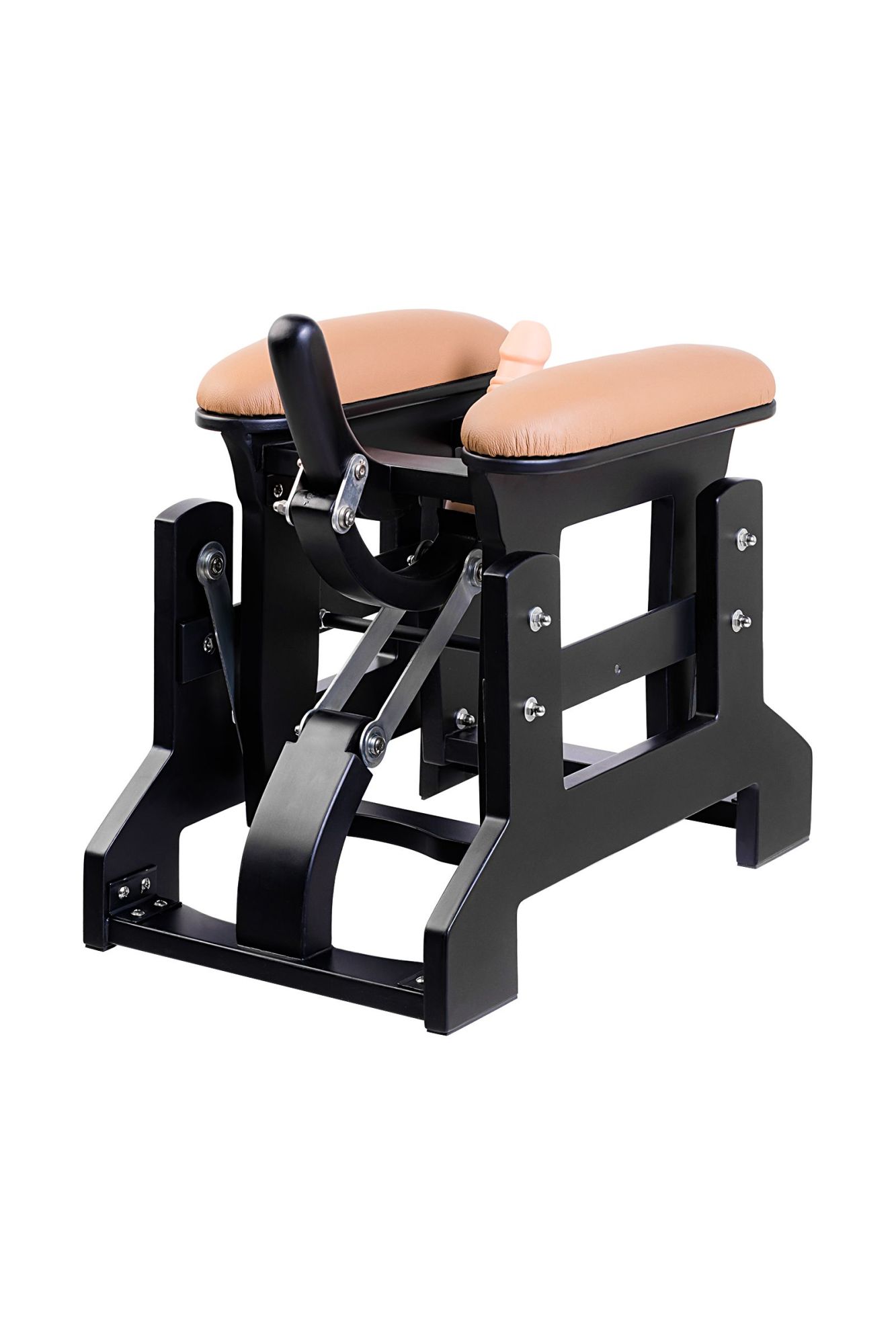 Принцип работы этого секс-тренажёра напоминает секс на несущемся галопом скакуне. Воплотить в реальность такой сценарий крайне сложно, но только не с этим приспособлением: раскачиваясь взад и вперёд, удерживая и нажимая на ручку, можно контролировать скорость, глубину и частоту вхождения фаллоса! Вагинальное проникновение рельефным фаллоимитатором (16,5 см) или анальное с помощью пробки (16,5) — этот тренажёр знает толк в интимных упражнениях. И, что немаловажно, секс-машина имеет адаптер для сменных фаллоимитаторов, что позволяет устраивать интимные встречи с другими насадками. Положительной особенностью приспособления является и то, что оно работает очень тихо, без проводов, а также имеет небольшой вес. Всё для того, чтобы от приятного процесса ничто не отвлекало!