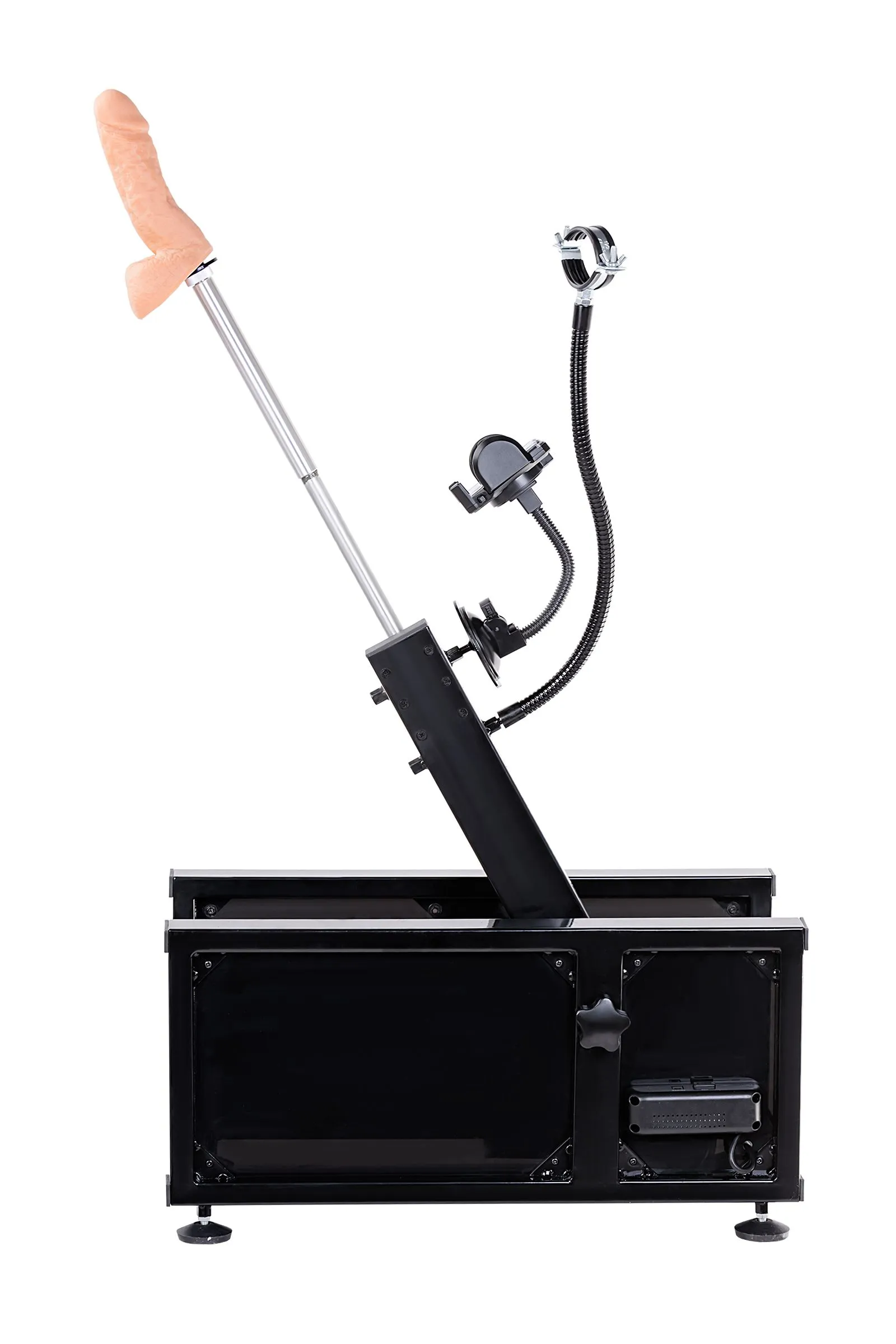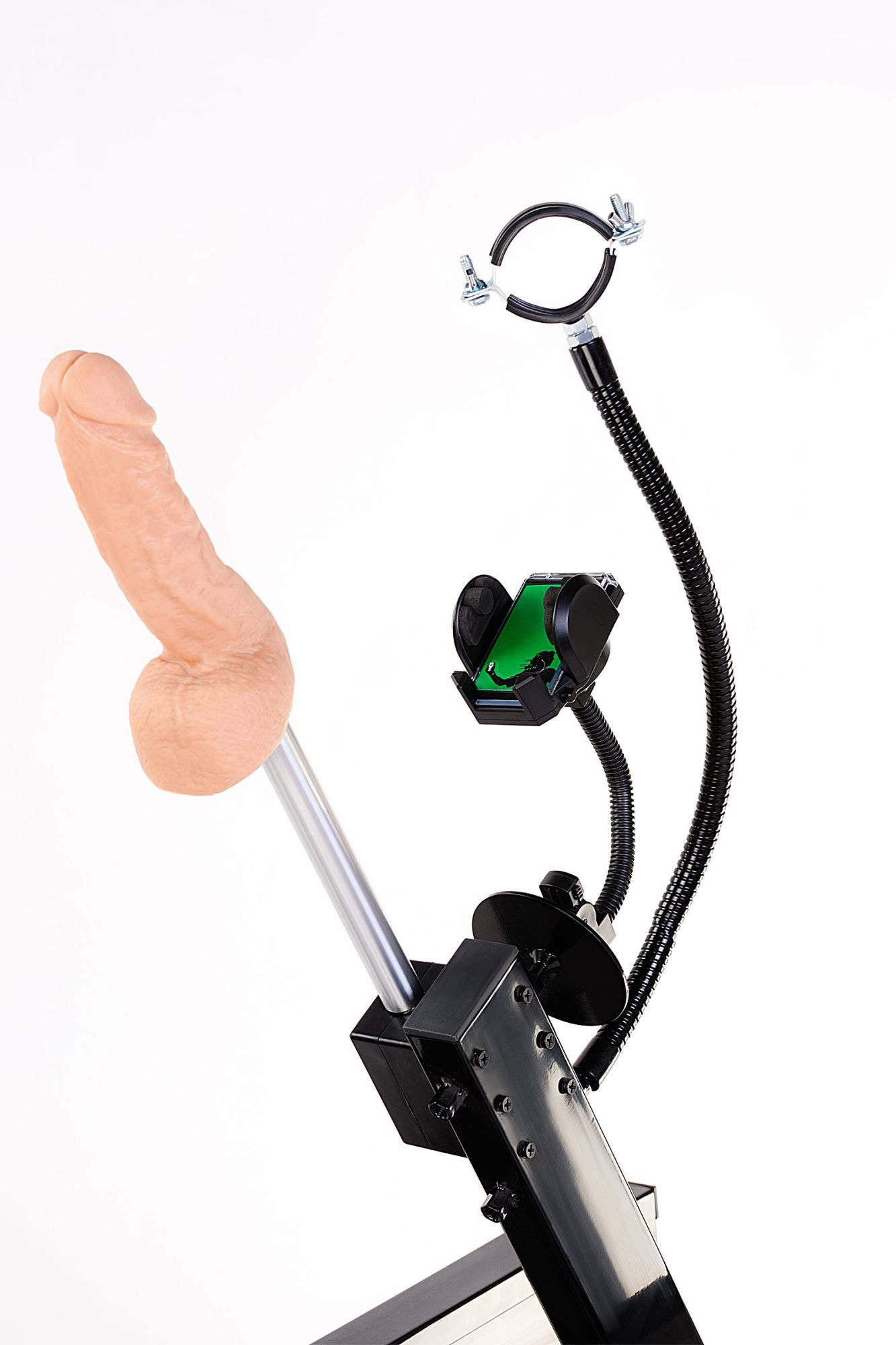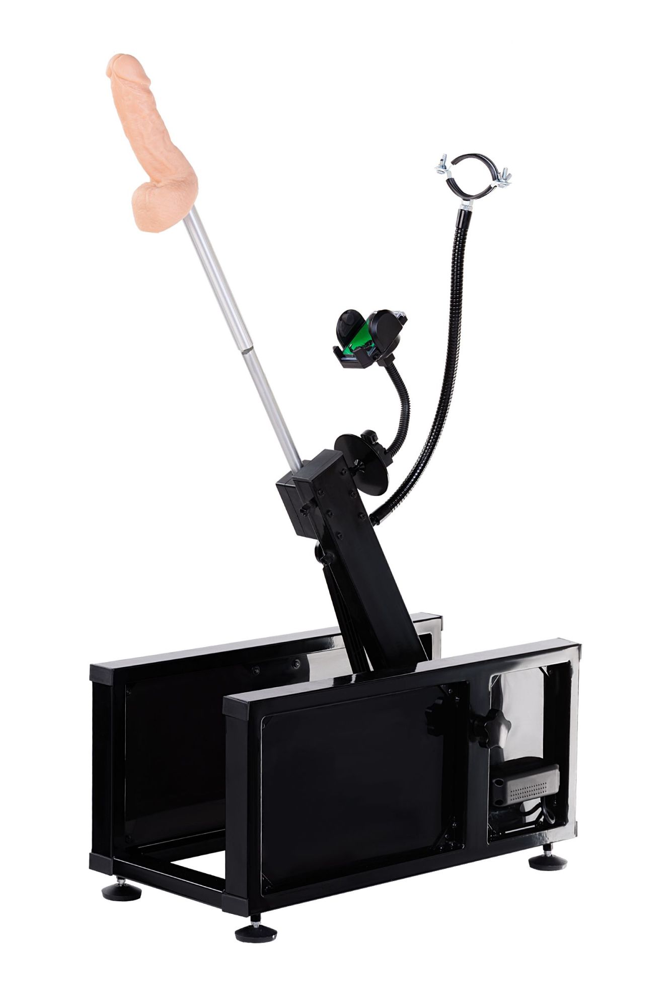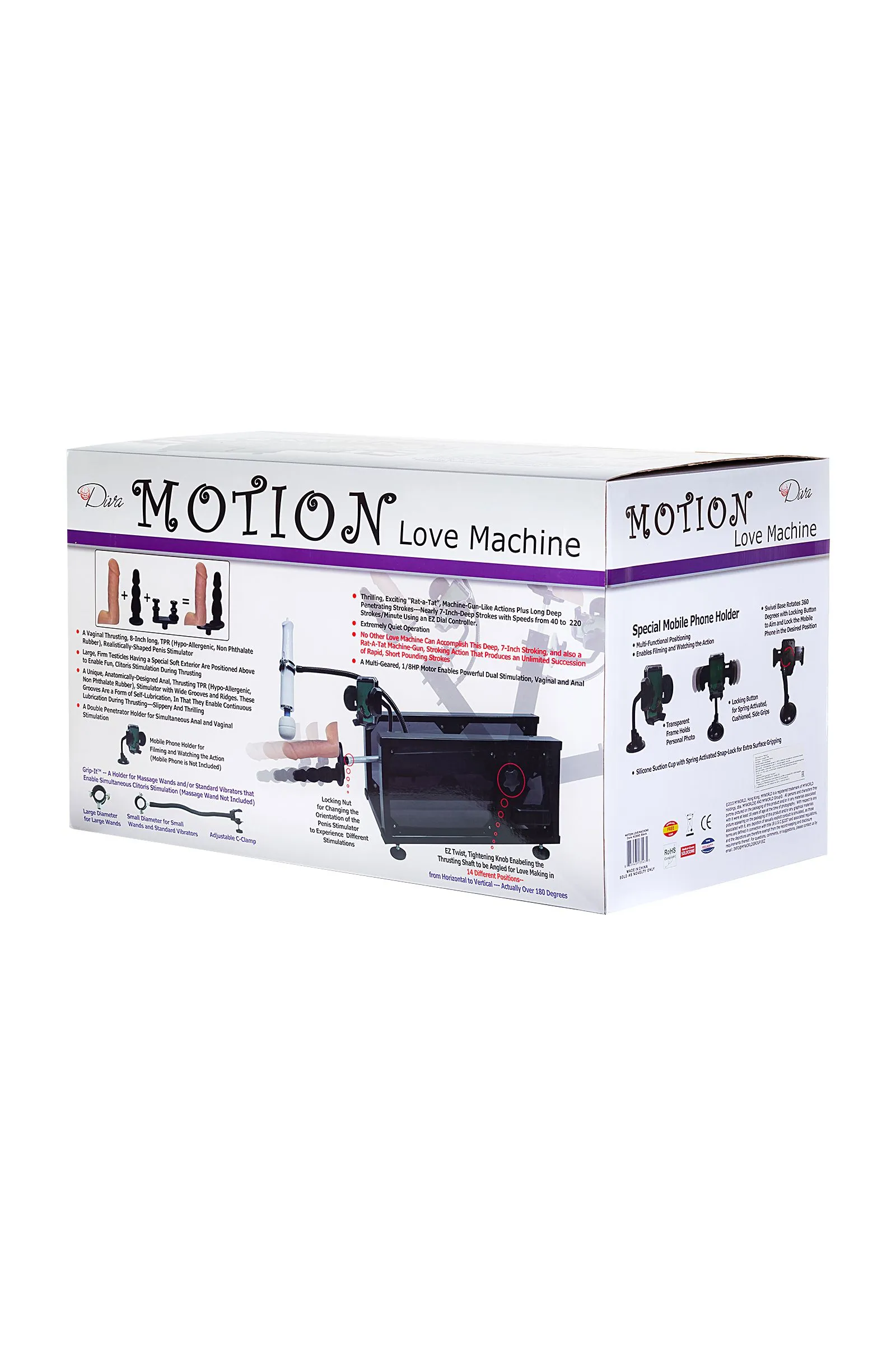 Секс-машина Motion доставит вам неземное удовольствие под любым углом, ведь она может то, что ни одна другая машина в мире! Ей доступны 14 угловых положений, это более чем на 180 градусов, также она порадует Вас самым глубоким проникновением, длина фрикций достигает почти 18 см! Секс-машина Motion поставляется в собранном виде. Вам лишь нужно установить нужную насадку - реалистичный фаллоимитатор или анальный стимулятор ёлочка, а благодаря специальному переходнику, объединив обе насадки, Вы сможете получать удовольствие от двойной стимуляции. Скорость секс-машины удобно регулируется от 0 до 220 фрикций в минуту. Управление производится с помощью выносного пульта с длинным шнуром. В комплекте с машиной входит Hands free адаптер "Третья рука", которая позволяет использовать вместе с машиной вибромассажер Hitachi Magic Wand. А с помощью специального держателя для смартфона Вы сможете снять свое домашнее видео и поделиться им со своим партнером по электронной почте.