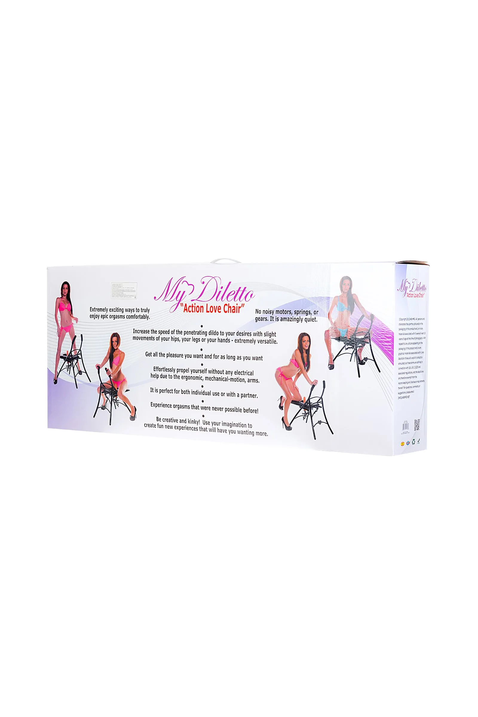 Секс "стул" My Diletto подарит вам ощущения глубокого реалистичного проникновения, как будто бы вы "оседлали" настоящего мужчину. My Diletto использует естественное движение вашего тела, чтобы обеспечить стимуляцию в удобном положении с пользой для ваших мышц. Ведь вы не только получаете удовольствие, но и практически занимаетесь фитнесом. Секс-фитнесом! Задайте высокий темп! В сложенном положении My Diletto в толщину занимает всего 15 см., что позволяет спрятать его под кроватью или в шкафу. Он компактный, портативный, не требует электричества или батареек. Движущиеся части работают бесшумно. В комплекте две насадки: реалистичный фаллоимитатор с выраженной головкой, телесного цвета и анальный стимулятор телесного цвета с комфортной для введения формой. Прикрепите ваш любимый фаллоимитатор к секс-тренажеру My Diletto, добавьте любимую смазку и наслаждаться непревзойденным удовольствием, как и когда вы этого хотите!