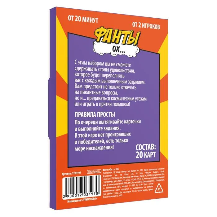 Внутри вы найдете: 20 карточек с фантами.