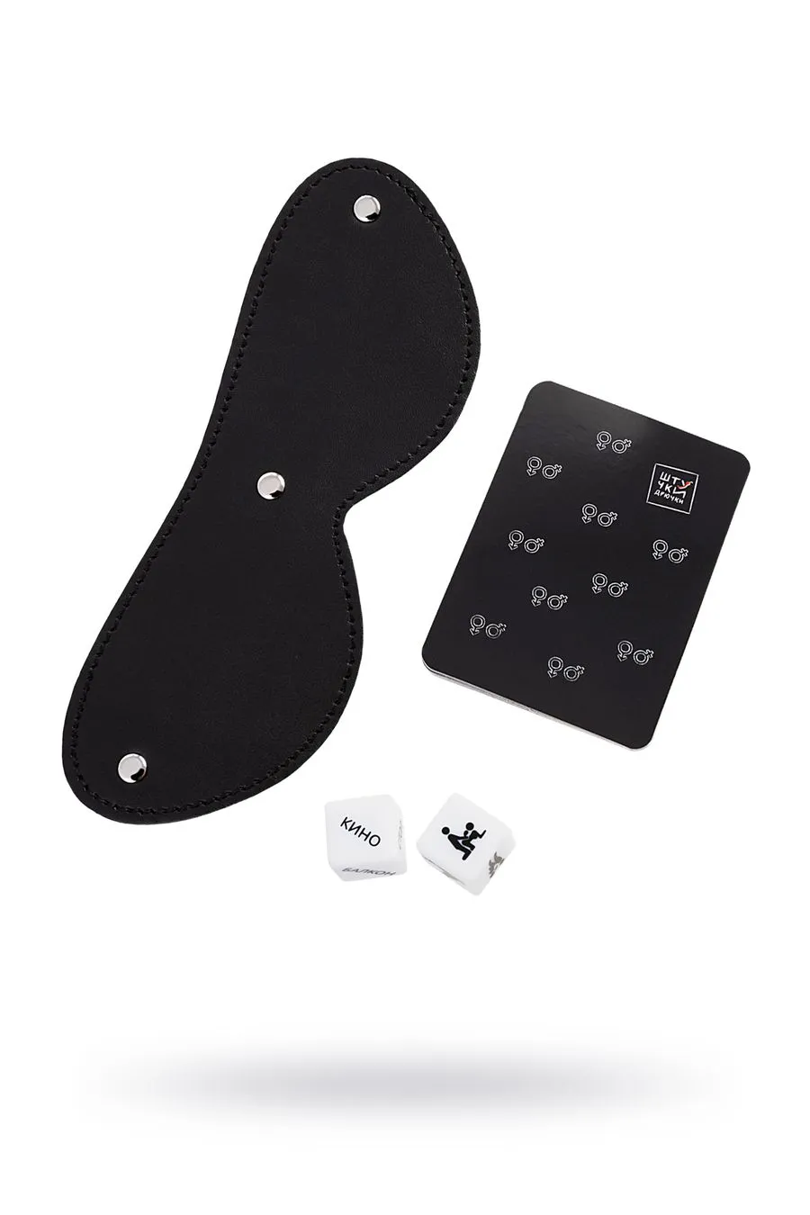Когда не хватает идей для романтического свидания или страстной прелюдии – набор аксессуаров в игре от бренда «Штучки-Дрючки» придет на помощь! Кубики дадут подсказку, где и в какой позе вы испытаете невероятное удовольствие, сценарии помогут определиться с ролью, а стильная маска добавит образу пикантности.