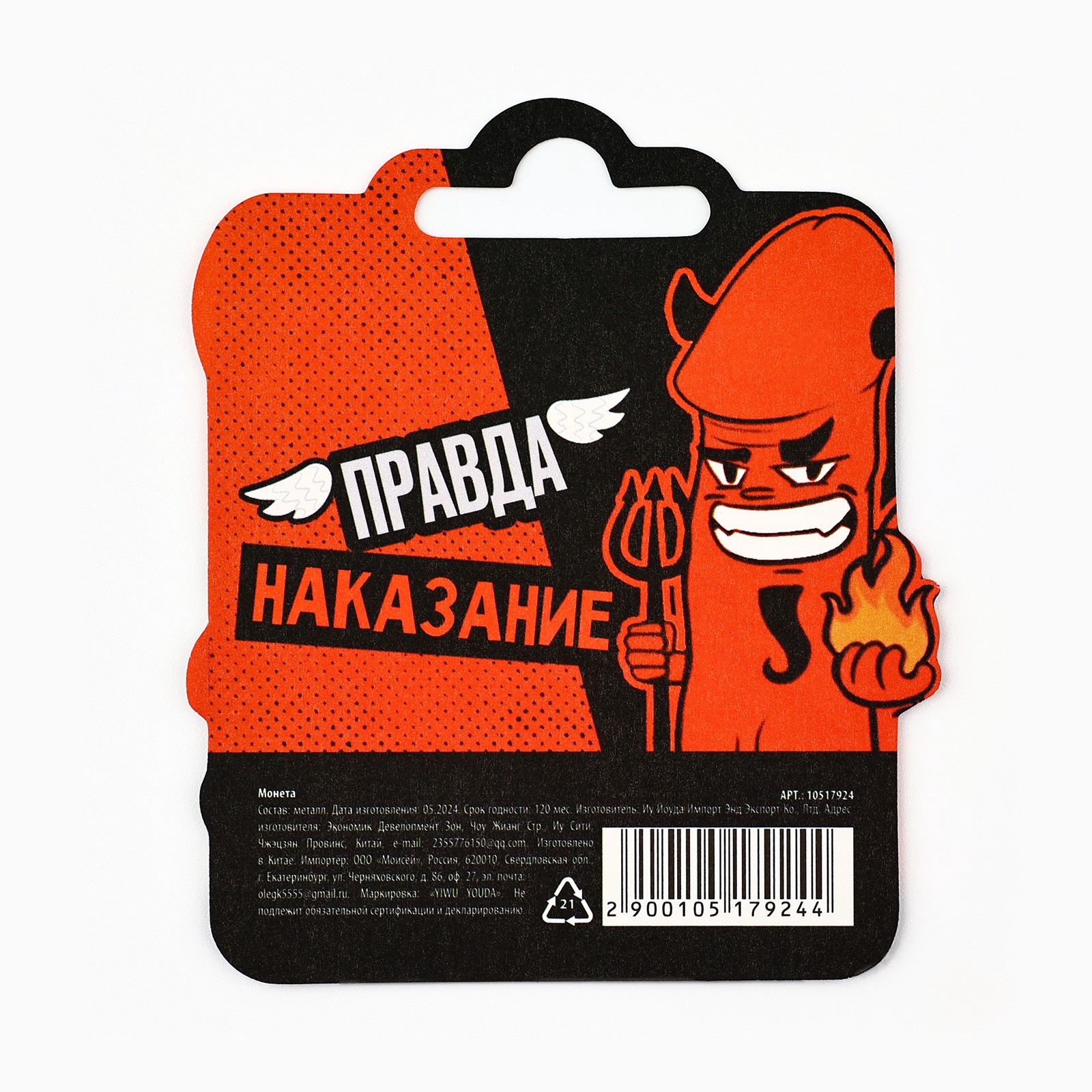 Размер изделия схож с монетой номиналом в 5 рублей, а потому вы всегда сможете носить её с собой. Она станет прекрасным подарком для друзей и близких, подчеркнув вашу заботу и хорошее чувство юмора!