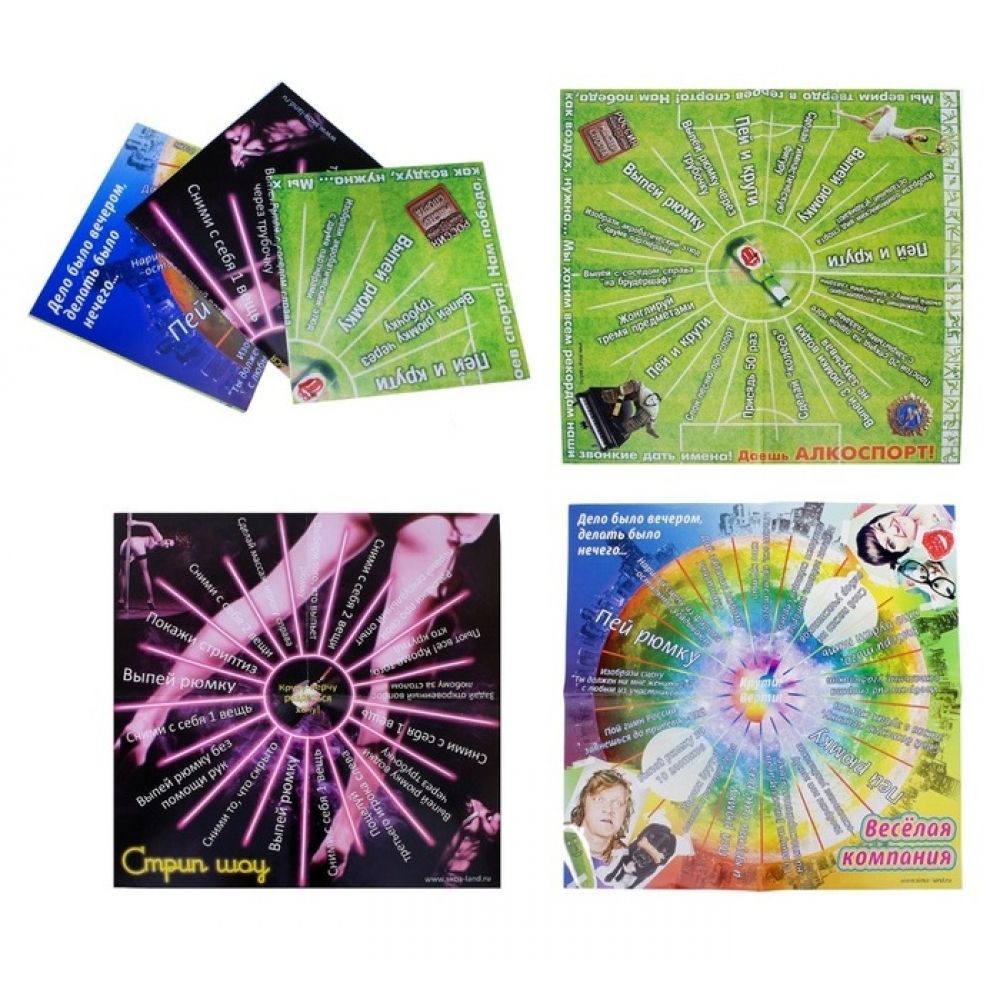Набор эротических игр для вечеринок. Набор содержит три игровых поля – «Веселая компания», «Стрип-шоу» и «Алкоспорт». Вариант классической игры «бутылочка». Бутылка определяет выбор задания, связанного с раздевание, алкоголем, ловкостью или иной тематикой Простая и интересная игра не даст заскучать гостям вашей вечеринки!