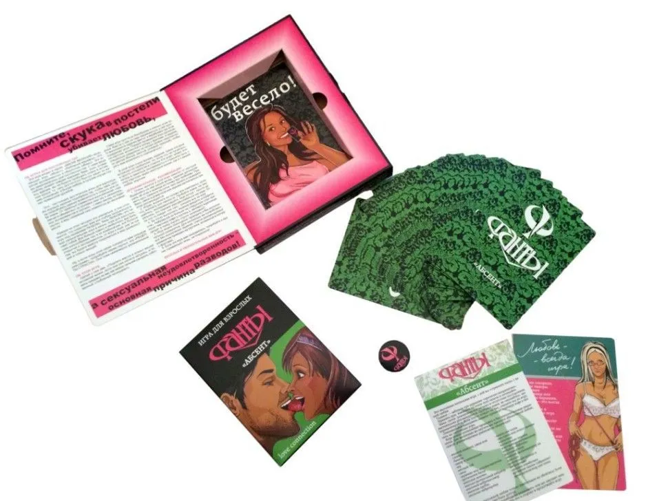 Эротическая игра "Фанты Абсент" – это уникальный шанс для супружеских и молодых влюбленных пар разнообразить интимные отношения, добавить в них остроты, воплощая самые непредсказуемые и потаенные желания. Фанты Абсент оживят вашу интимную жизнь, добавив в нее искры. Вы сможете узнать, что возбуждает возлюбленного, испытаете новые позы, узнаете различные эротические методики и научитесь без стеснения пользоваться невообразимыми секс-игрушками. Игра раскрепостит Вас, придаст уверенности в себе и вашем партнере.