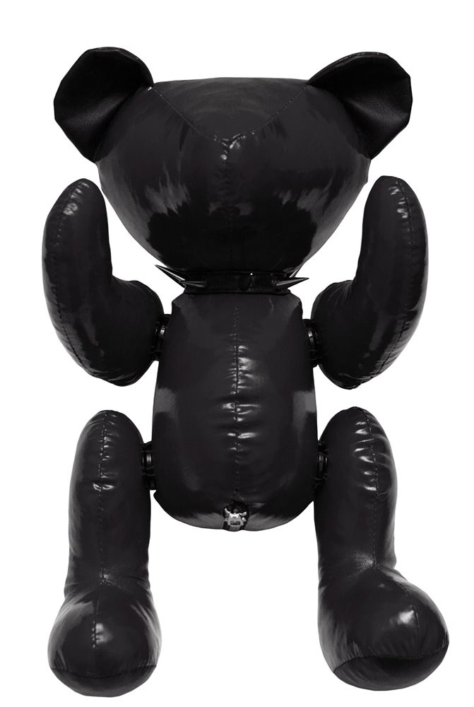 Этот медведь, выполненный вручную из искусственной кожи, может служить Вам и как необычная игрушка, и как кошелечек. Облик этого мишки сразу говорит о том, что это не простая игрушка - ошейник с шипами и морда без глаз придают ему по-настоящему дерзкий вид. Лапки медведя подвижны, они крепятся к телу при помощи магнитов, поэтому Вы сможете легко придать ему нужное положение или вовсе отделить их. В туловище игрушки в самом низу есть небольшой кармашек на молнии, который можно использовать для хранения всяких мелочей. Ошейник застегивается на кнопку, при необходимости его можно снять.