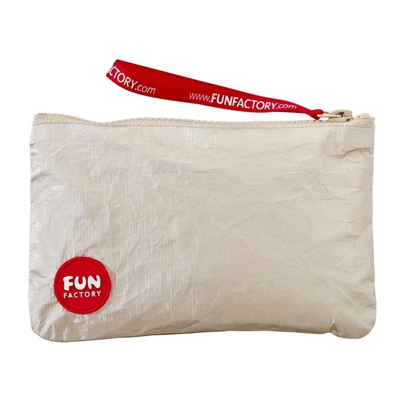 Сумочка небольшого размера от компании Fun Factory надежно защитит Ваши любимые игрушки от пыли и грязи, а также скроет их от любопытных глаз. Помимо игрушек в ней можно хранить косметику и прочие полезные мелочи. Сумочка сделана из инновационного материала тайвек, который изготавливается из 100% полиэтилена высокой плотности. Этот материал сочетает в себе характеристики бумаги, пленки и ткани, поэтому изделия из него очень прочные и влагоустойчивые. Сумочка застегивается на молнию, она непрозрачная, гладкая на ощупь и безворсовая.