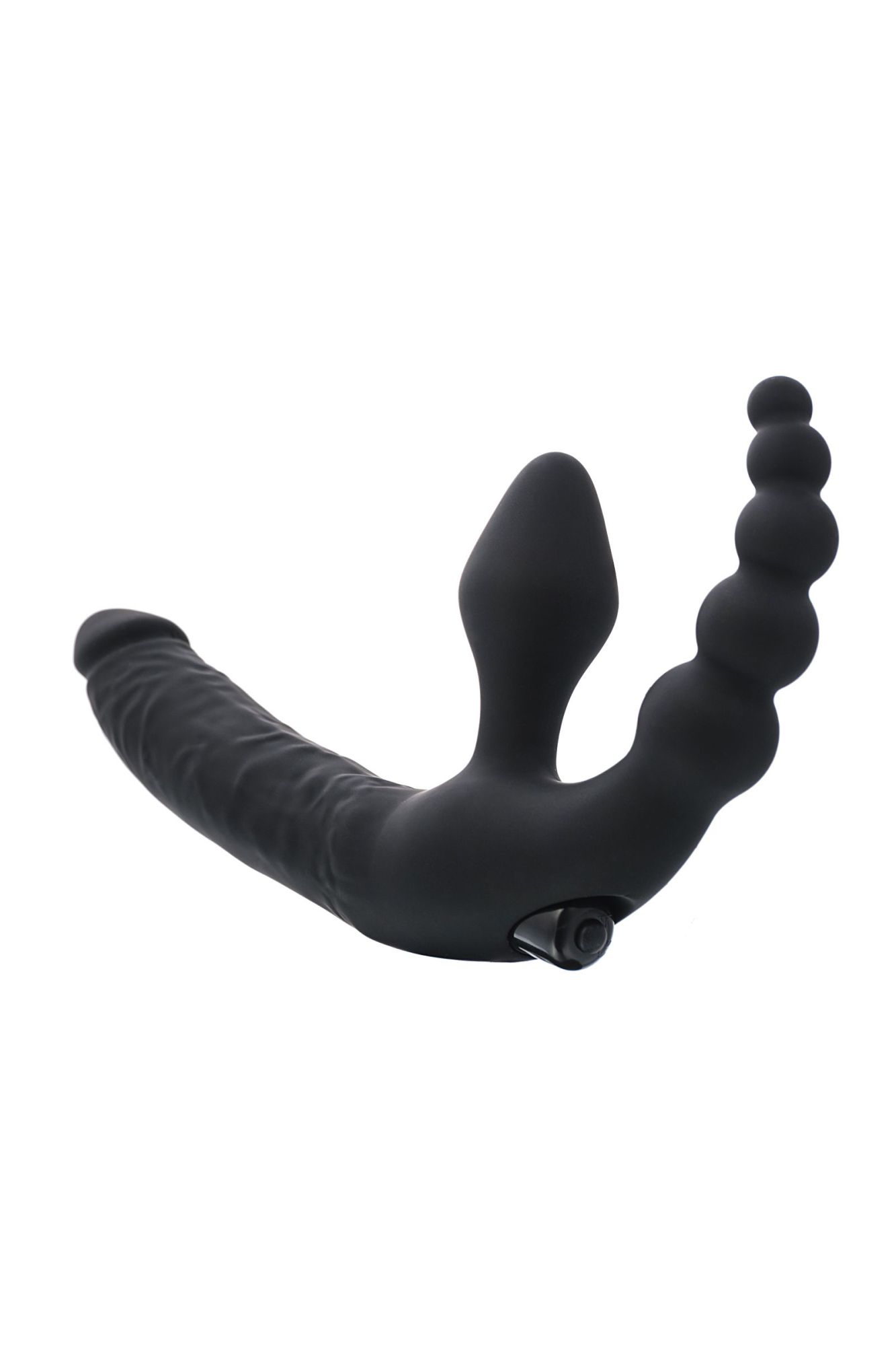 Этот анатомический страпон готов доставить уникальное удовольстие обоим партнерам: его обладательница испытает удовольствие от одновременной вагинальной и анальной стимуляции, а партнер(ша) от проникновения вибратора, расположенного под идеальным углом для достижения высшей точки наслаждения.