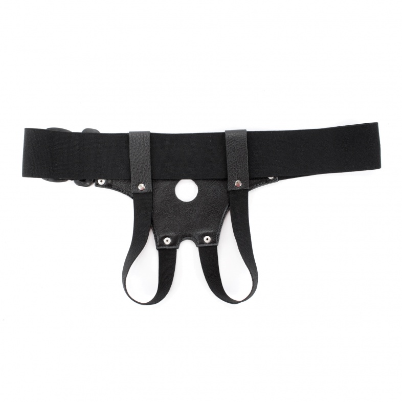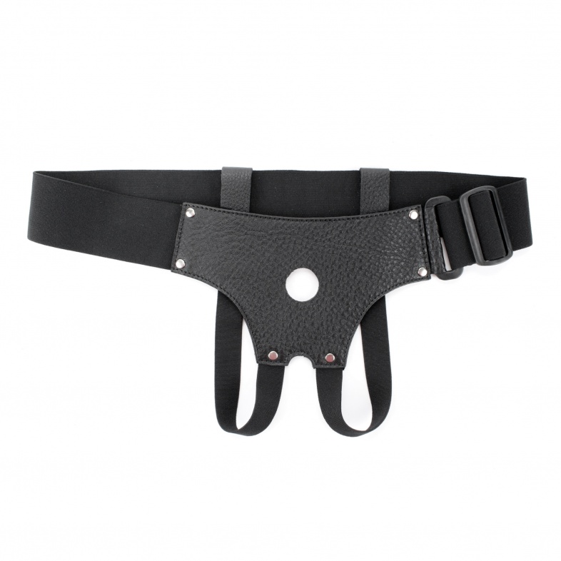 Трусики для страпона, изготовлены из кожи, имеют отверстие-доступ в области бикини. Крепятся при помощи широких ( 5 см) эластичных лент. Размер легко меняется при помощи застежки. Диаметр отверстия для страпона - 2,5 см