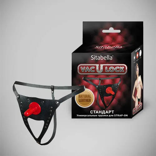 Изготовлены из натуральной кожи. При производстве используется никелированная фурнитура. Размер регулируется ремешками, которые крепятся на бёдрах (от 42 до 50 размера). В комплект входит съёмный пластиковый плаг для насадок (длина 68 мм). Идеально подходит для использования, как мужчиной, так и женщиной. Упаковка - картонная коробка.
