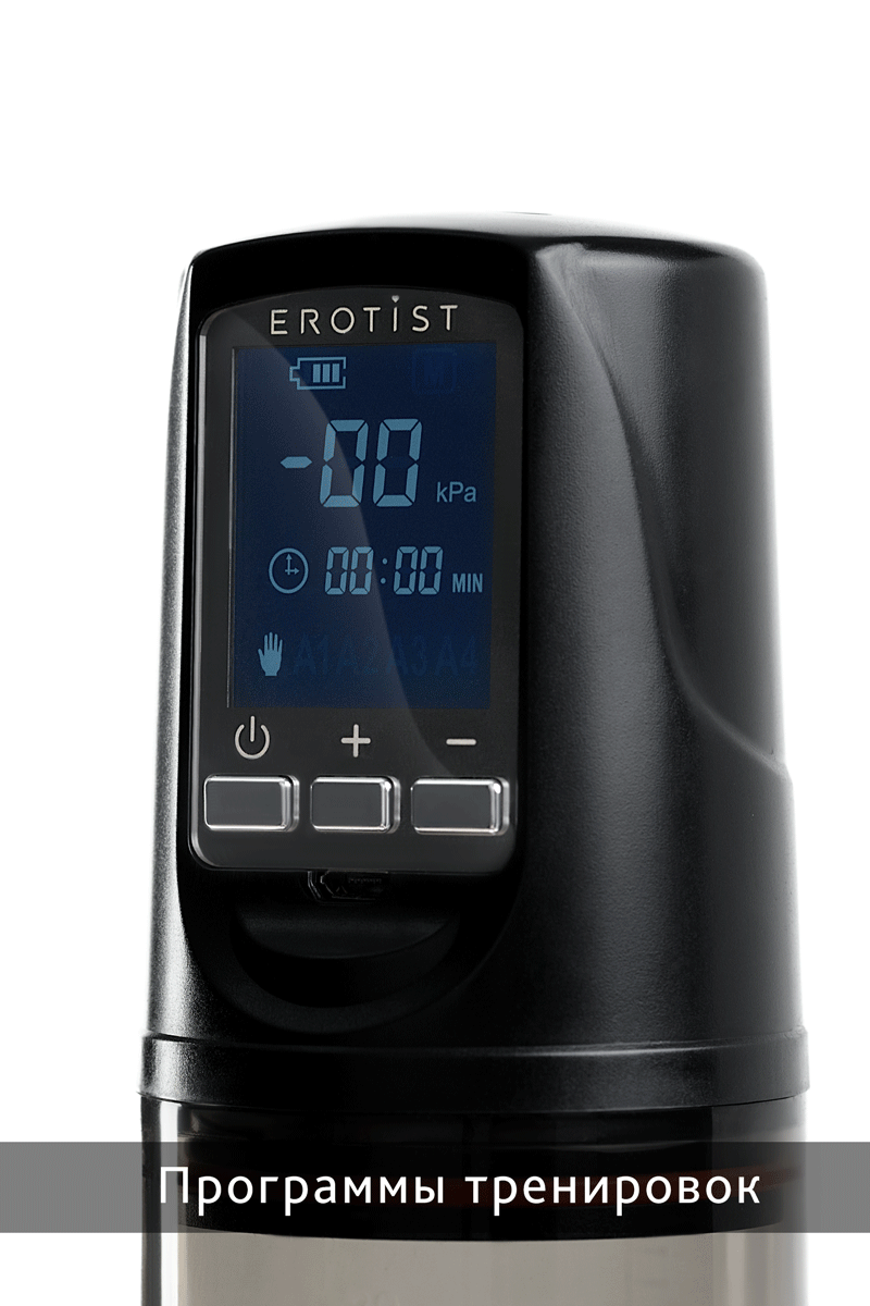 Первый полностью автоматический вакуумный тренажер для мужчин Erotist ToZoom — эффективное устройство для увеличения полового члена, поддержания мужского здоровья и улучшения качества эрекции. Работа на основе вакуумных технологий. Erotist ToZoom представляет собой прозрачную колбу, в которой с помощью вакуума создается разрежение воздуха. Для корректной работы устройства необходимо плотно прижать помпу к телу для создания полного вакуума. В случае попадания воздуха в колбу в процессе работы сработает предохранитель и произойдет выключение устройства. Уникальный автоматический режим с 4 программами. Значительно упрощает процесс тренировок. Вы лишь выбираете комфортную программу и нажимаете кнопку, дальше тренажер все делает за вас. Дополнительный ручной режим. Помогает настроить тренажер под индивидуальные особенности. Вы сами контролируете свои занятия и устанавливаете подходящие значения. Индивидуальные курсы тренировок. Для вашего удобства разработаны три курса тренировок: Fast Power для мощного кратковременного увеличения члена, Men's Health для профилактики здоровья и Max Size для долговременного увеличения члена. Видимый результат. Уже после 15 минут применения ваш член увеличится в размере. Этот эффект будет держаться в течение 1-2 часов. Постоянный результат достигается за счет регулярных упражнений. Гарантия 1 год. Стань мощнее с Erotist ToZoom!