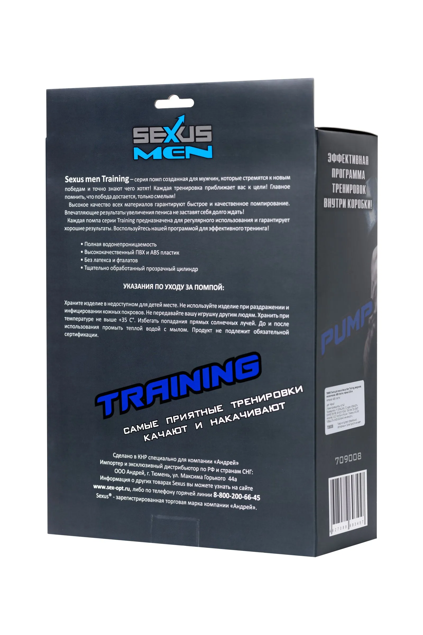 —Помпа для пениса Sexus Men Training, вакуумная, механическая, ABS пластик, черный