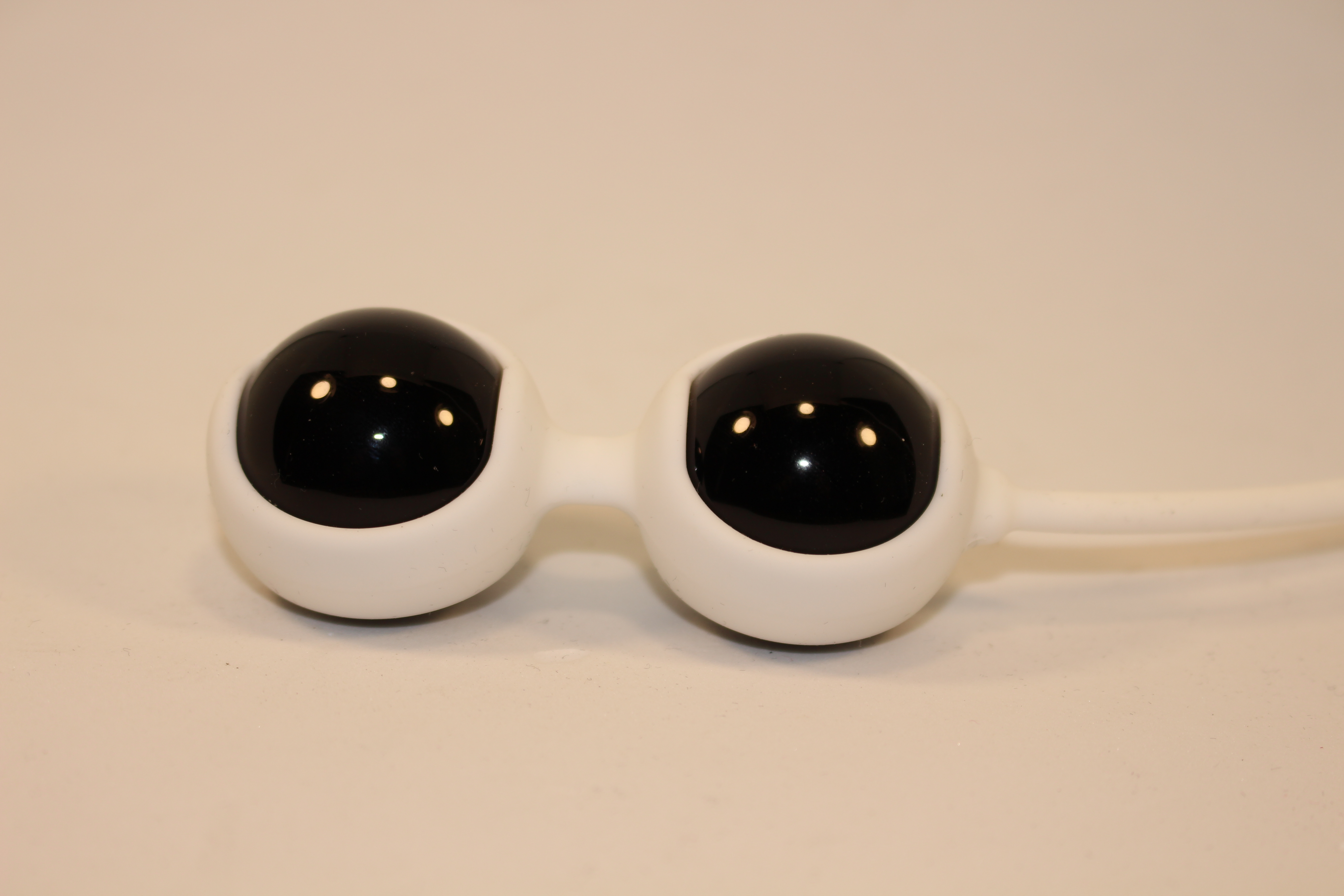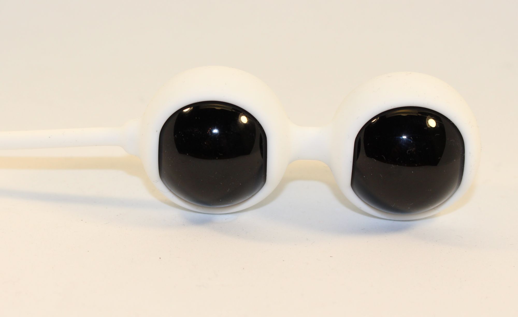 Благородного черного цвета вагинальные шарики со смещенным центром тяжести для тренировки интимных мышц. Вагинальные шарики используют для сексуального удовольствия. Петля позволяет легко извлекать шарики. Характеристики: цвет – белый/черный, материал – силикон, стекло, общая длина – 16 см, рабочая длина- 7,5 см, диаметр шариков 2,8, диаметр шариков в силиконовой вставке– 3,3 см, производитель – Китай. Упаковка: картонная коробка с принтом.