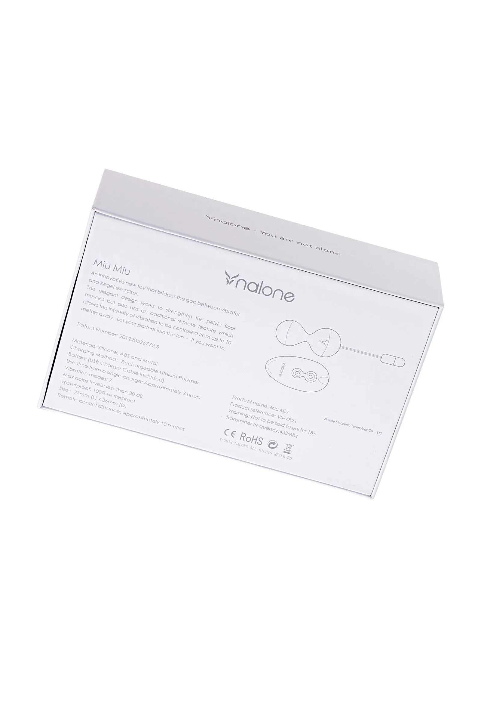 Вагинальные виброшарики Nalone MiuMiu – союз дизайна и технологий, созданный для женщин. Этот девайс придется по вкусу ценительницам высокого качества, комфорта и функциональности. Его внешний вид понравится даже придирчивым эстетам, а возможности поразят как новичков, так и продвинутых пользователей. • Благодаря выверенной форме и разному диаметру шариков прорабатываются все интимные мышцы; • с помощью кнопки «Умный шарик» запускается режим более эффективной тренировки: пульсирующие движения укрепляют стенки влагалища, предупреждая опущение матки, недержание мочи и другие медицинские проблемы; • 7 режимов вибрации не только добавляют занятиям пикантных ощущений, но и позволяют использовать девайс как полноценную секс-игрушку; • пульт дистанционного управления раздвигает границы сексуальной игры – теперь партнер может управлять вашим удовольствием на расстоянии до 10 метров всего одной кнопкой, даже когда вы в ванной; • маленький грузик на конце хвостика служит одновременно и передатчиком для пульта, и дополнительным весом для усиления эффекта от тренировок. С виброшариками Nalone MiuMiu вы не только получите здоровые и сильные интимные мышцы, но и ощутите, какой яркой может быть ваша сексуальная жизнь. Не соглашайтесь на меньшее, соглашайтесь на Nalone!