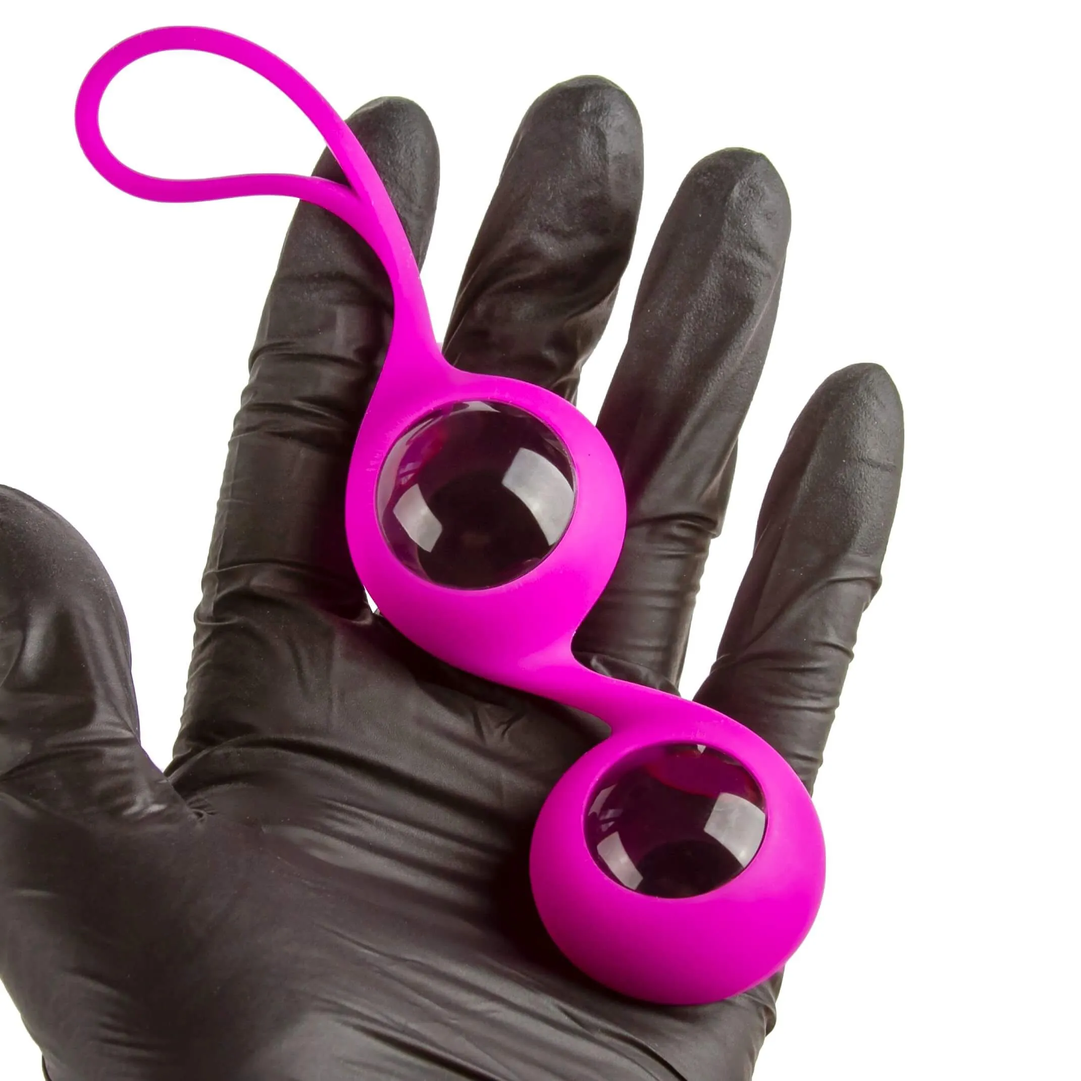 Основа игрушки изготовлена из силикона, шарики - из боросиликатного стекла. Диаметр шарика - 3 см. На конце предусмотрена петелька для безопасного извлечения шариков.